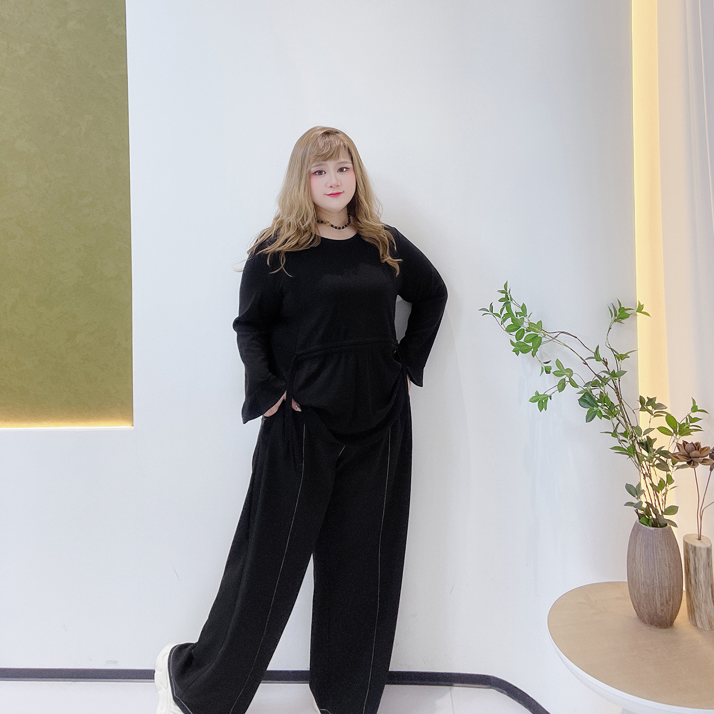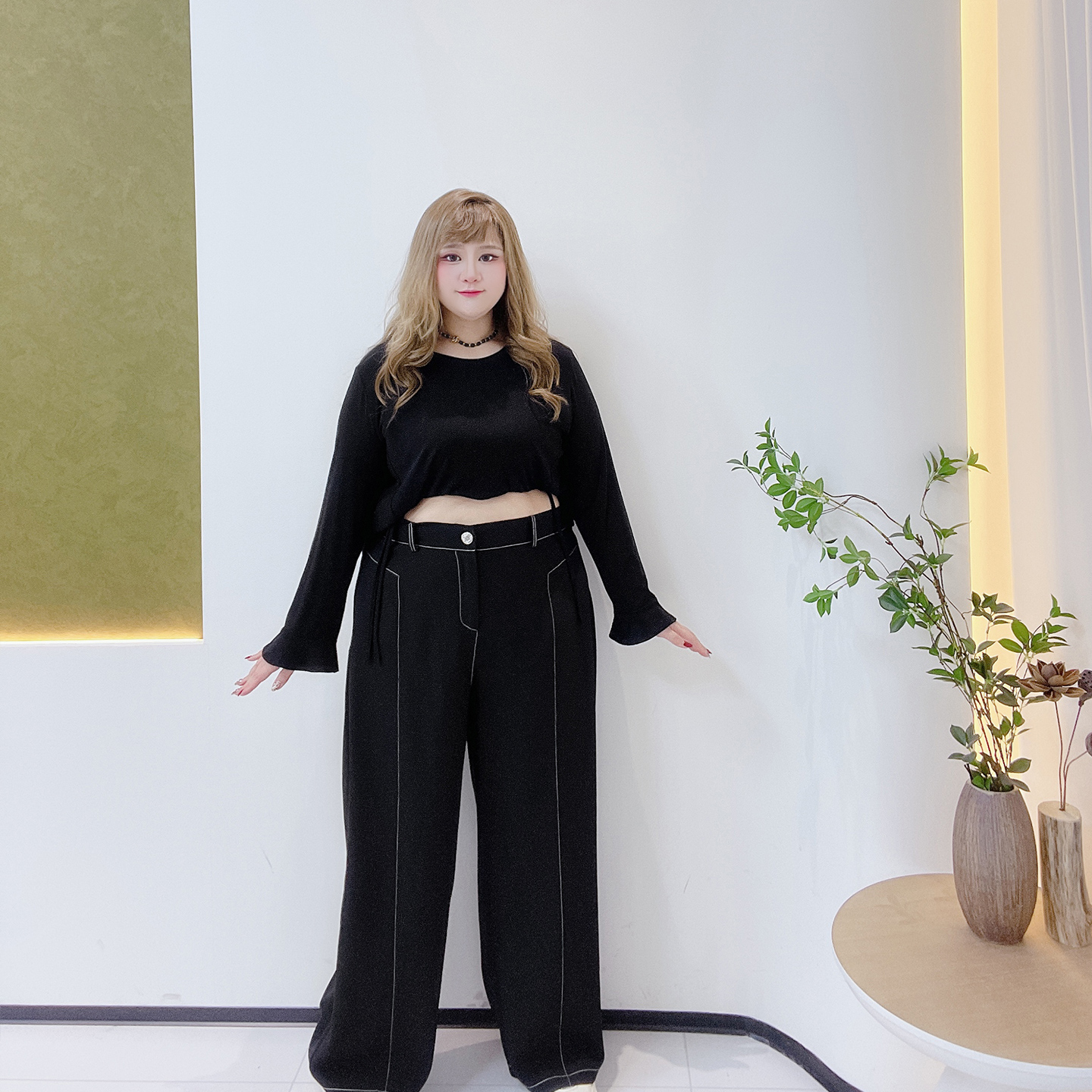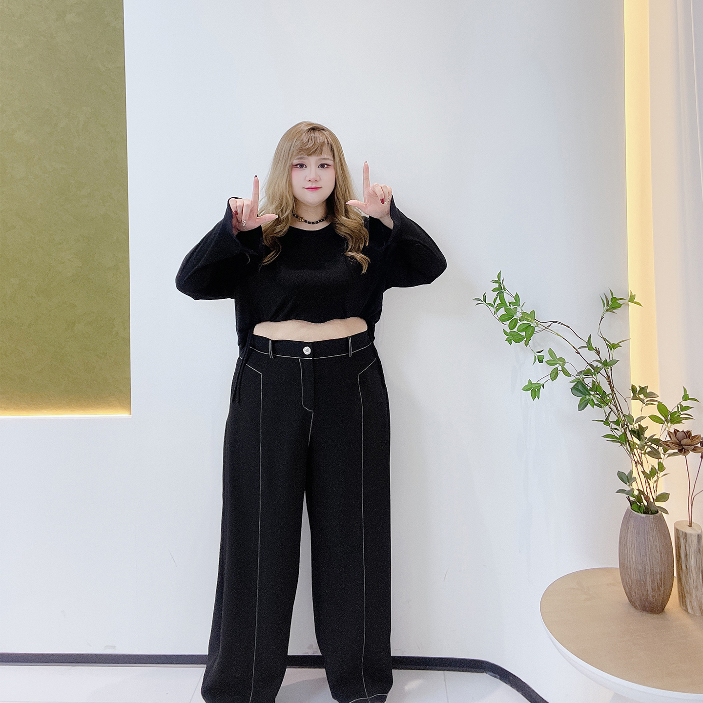 韩系简约胖莹莹大码女装2025秋冬酷飒垂感百搭明线高腰阔腿休闲裤