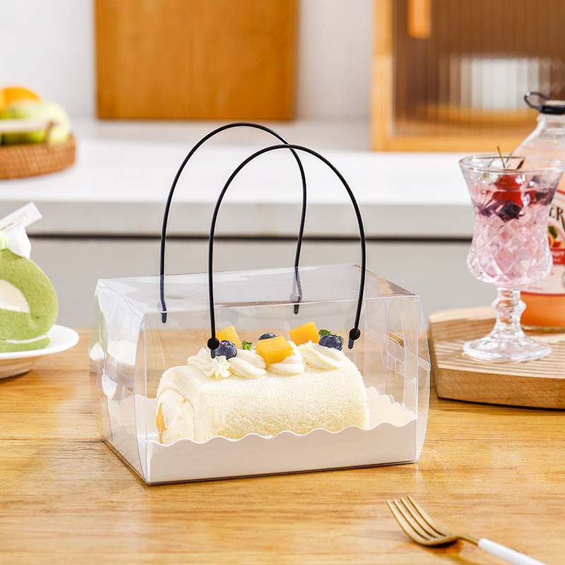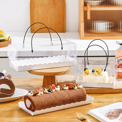 蛋糕卷包装盒透明毛巾卷瑞士卷盒子烘焙手提长条半整兔皮肉松卷盒
