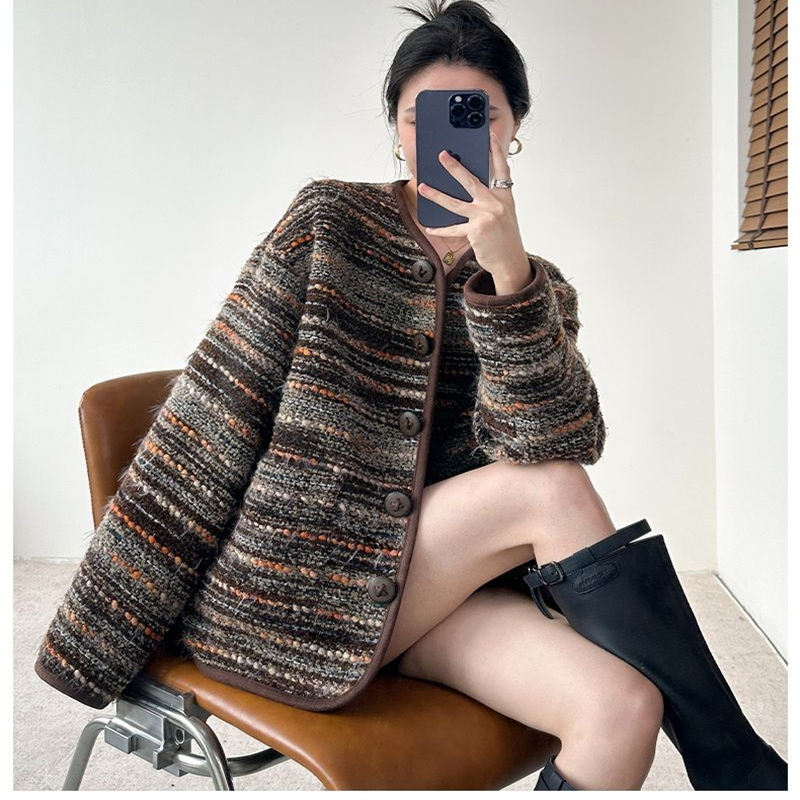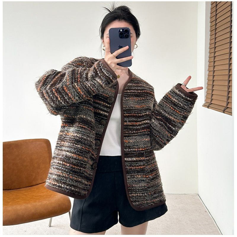 咖色轻奢渐变小香风氛围感外套女