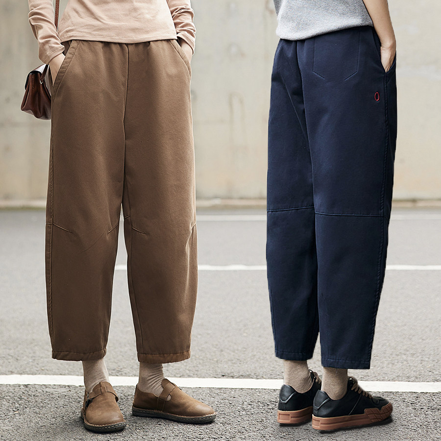 通勤百搭加绒加厚休闲裤女宽松气球裤冬季款复古松紧腰九分阔腿裤