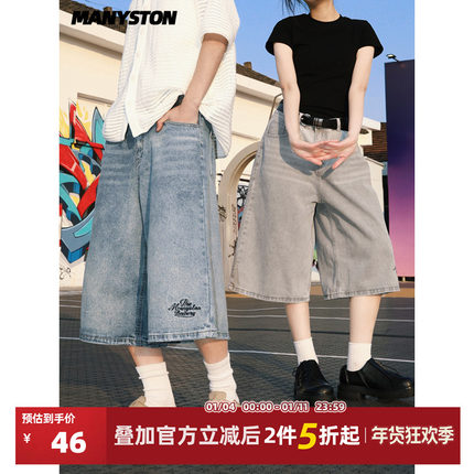 清仓MANYSTON美式高街水洗七分牛仔裤子男款夏季潮流百搭休闲短裤