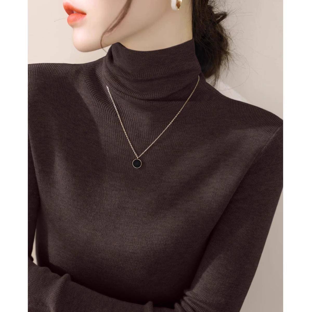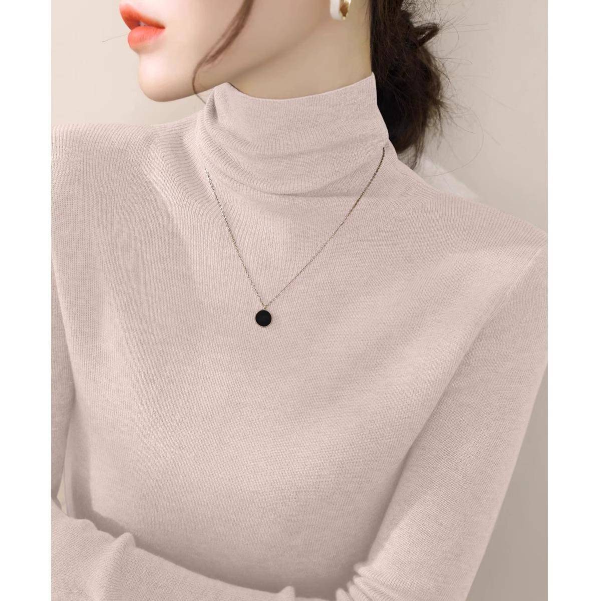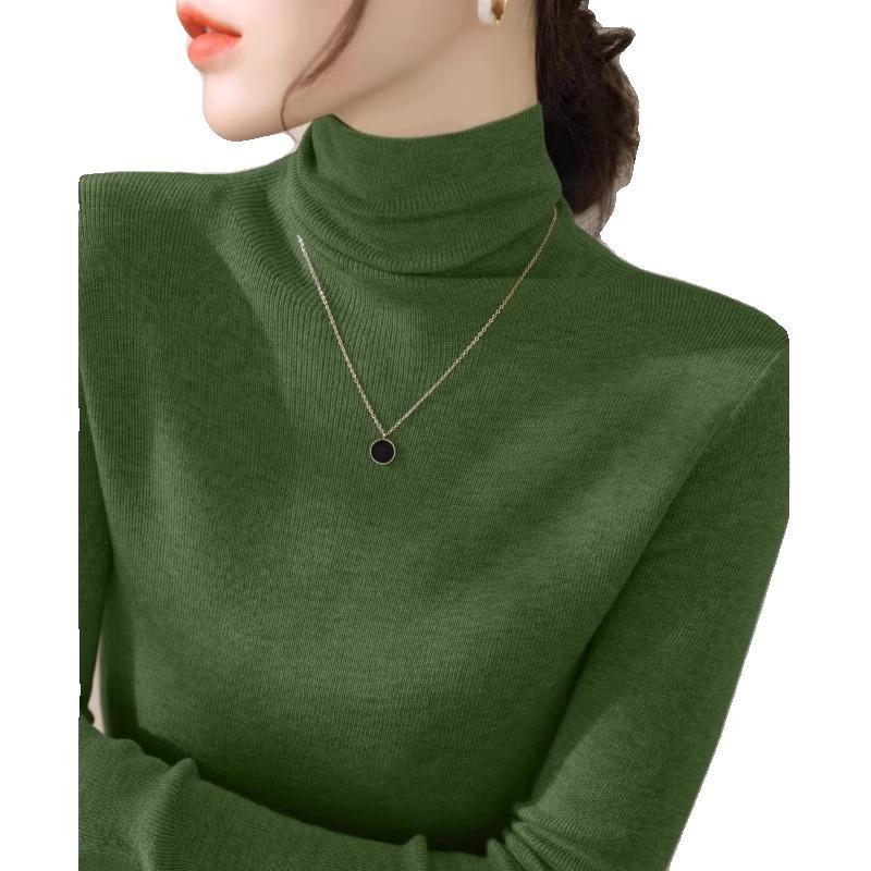 灰色高领针织打底衫女秋冬季2024新款修身显瘦毛衣内搭堆堆领上衣