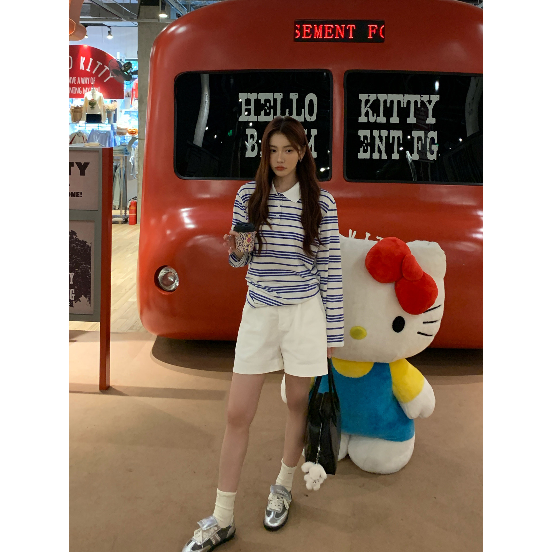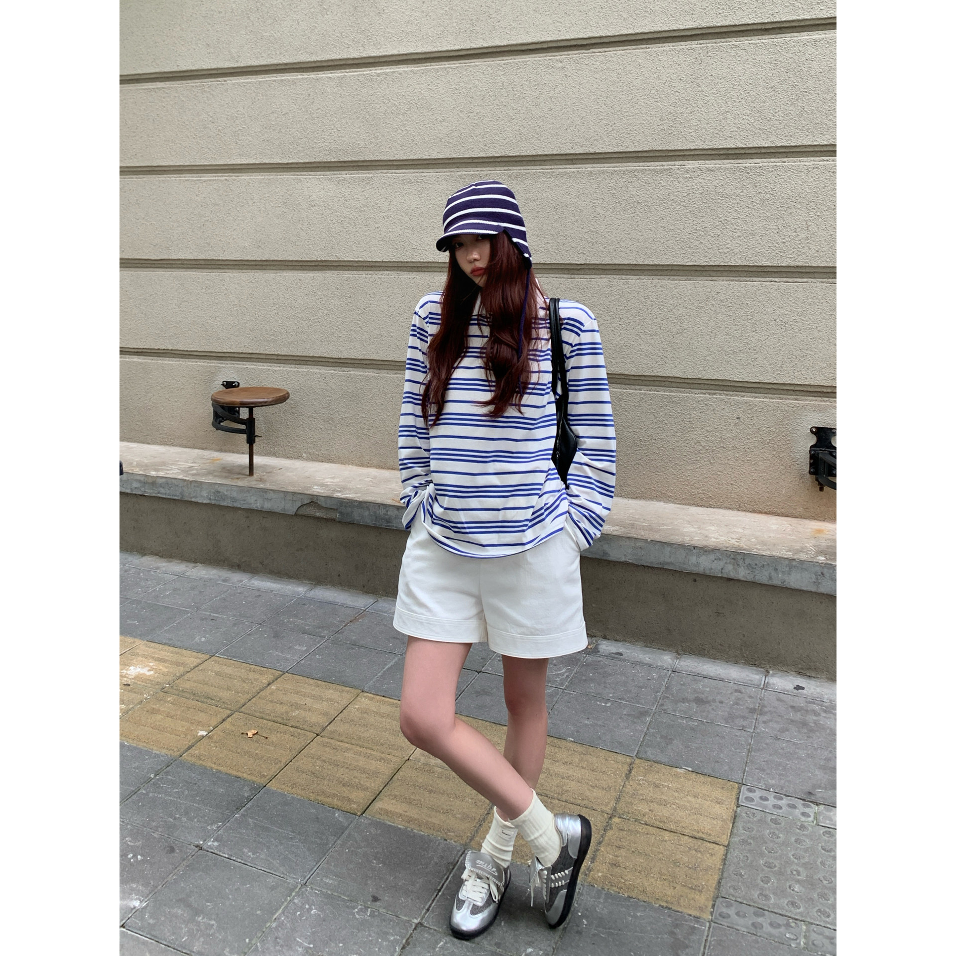 Halo Luu白色高腰休闲短裤女春夏新款百搭宽松a字阔腿显瘦裤子