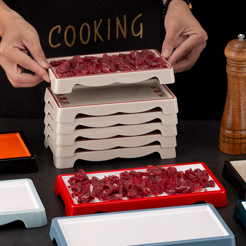 密胺平盘牛肉火锅店鲜切可火锅盘叠加盘双色牛肉特色肉盘潮汕自助