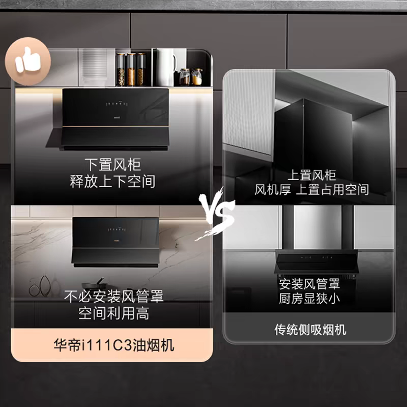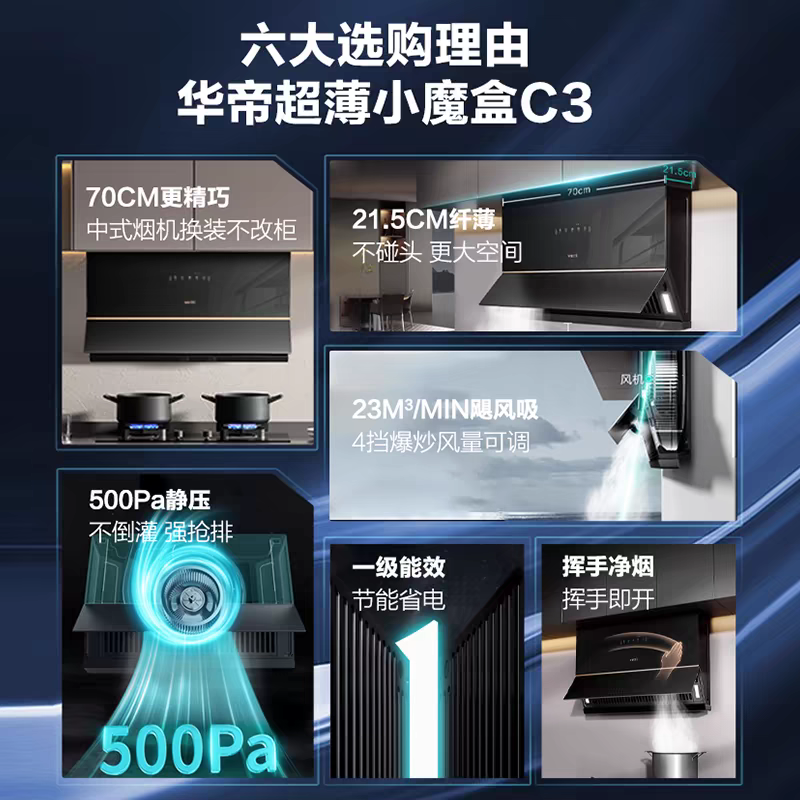 [超薄小魔盒]华帝C3小尺寸抽油烟机家用厨房大吸力吸烟机官方旗舰