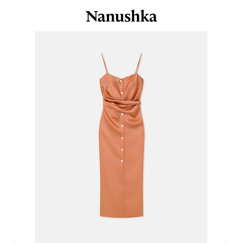 【季末折扣】NANUSHKA 女士 SAYAN 吊带垂褶中长连衣裙
