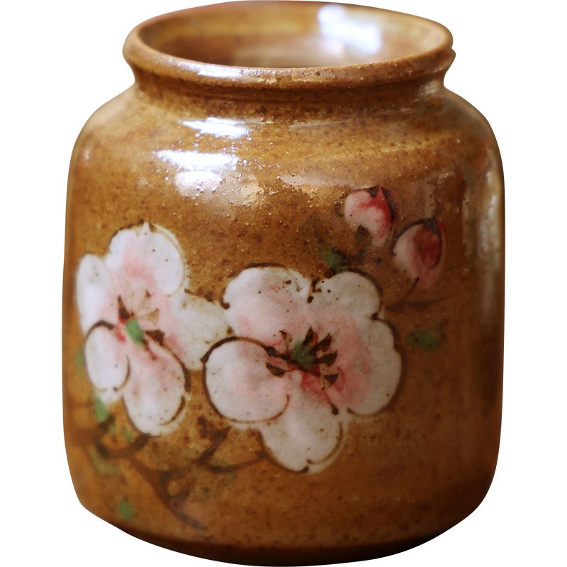 中式复古粗陶手h工彩绘梅花小花瓶花器小花插茶几桌面禅意装饰摆