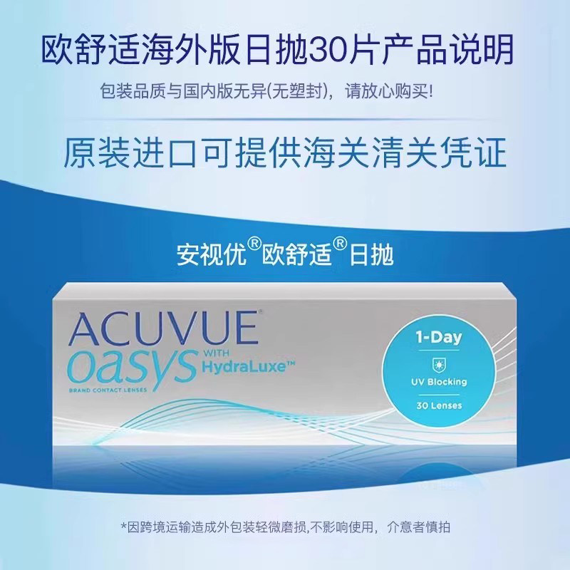 强生安视优Acuvue Oasys欧舒适隐形眼镜日抛近视30片装【2盒装】