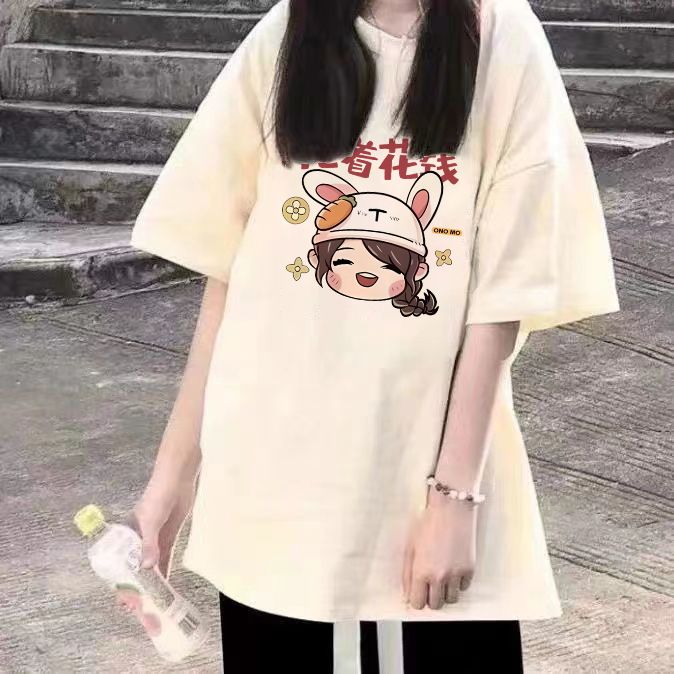2024夏季新款100%纯棉短袖t恤女学生韩版ins百搭宽松半袖上衣服潮