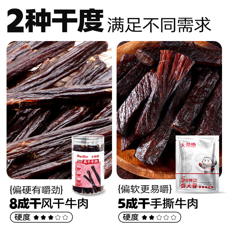 大希地手撕风干牛肉干内蒙古办公室解馋健身零食即食牛肉条特产