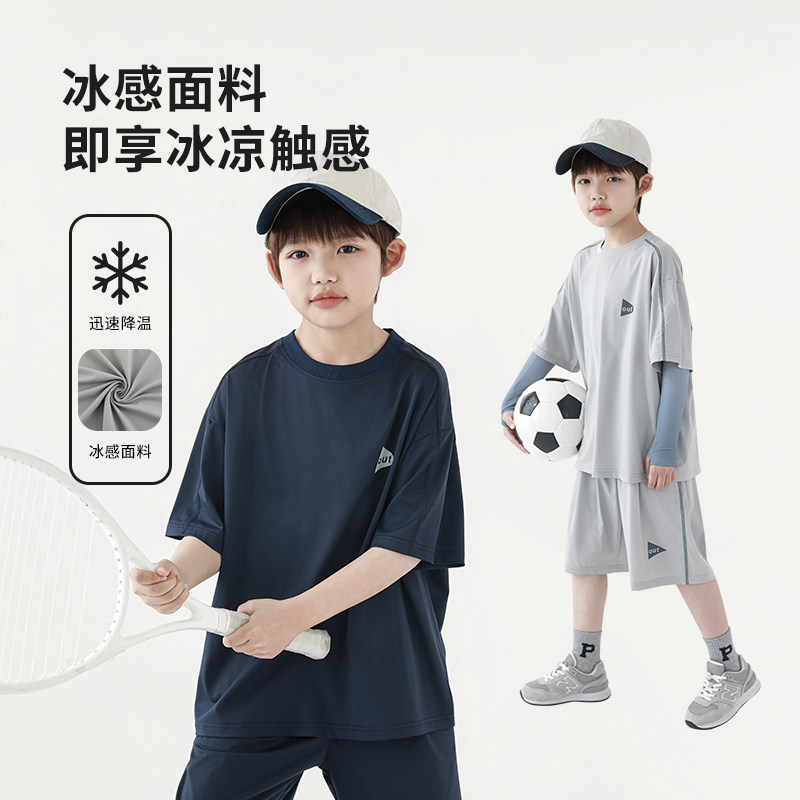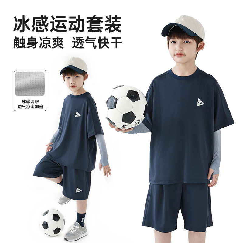 oddtails男童夏季冰感凉爽套装儿童男孩休闲短袖短裤两件套中大童