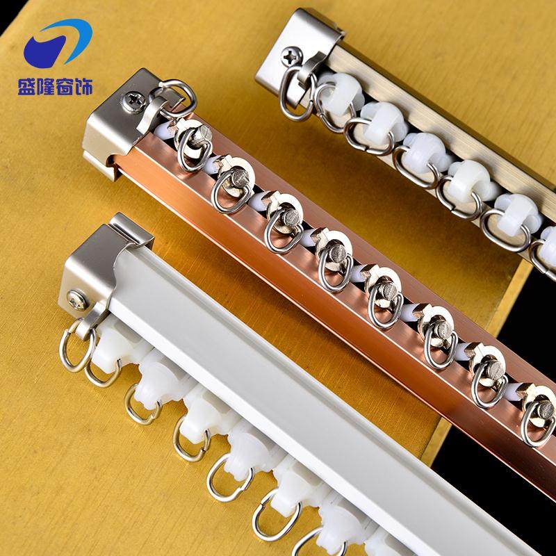 窗帘轨道直轨导轨滑道滑轨单轨加厚静音顶装侧装铝合金窗帘杆双轨