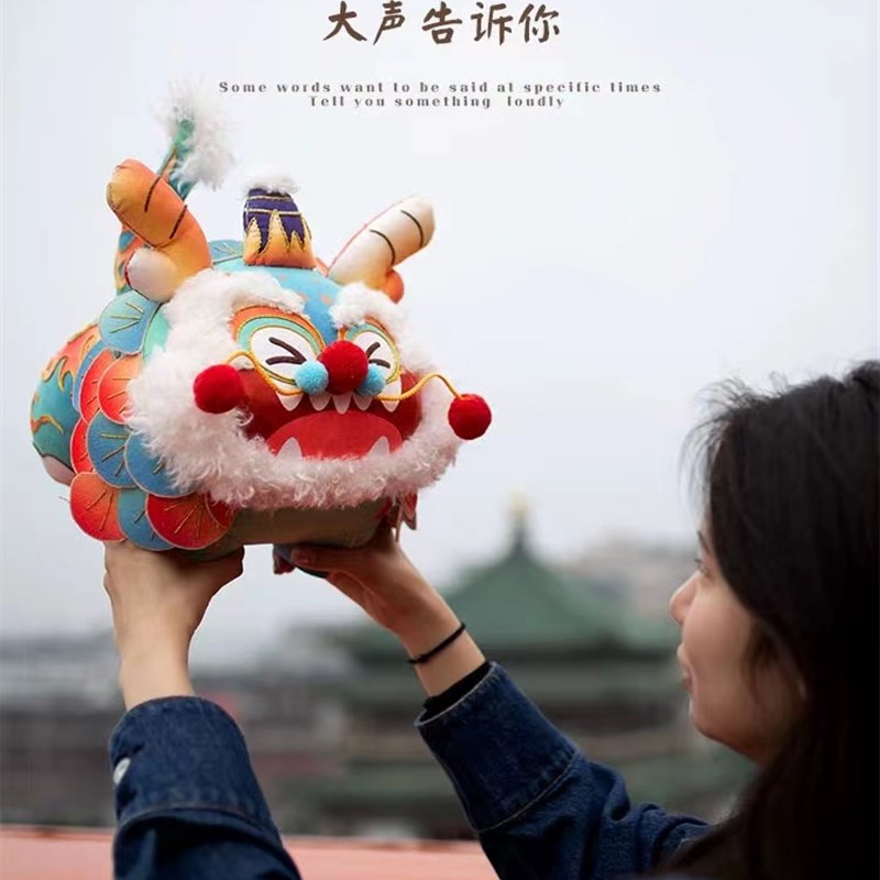 哈尼手工 刺绣diy大青龙成品立体布艺玩偶龙年摆件国风节日礼物