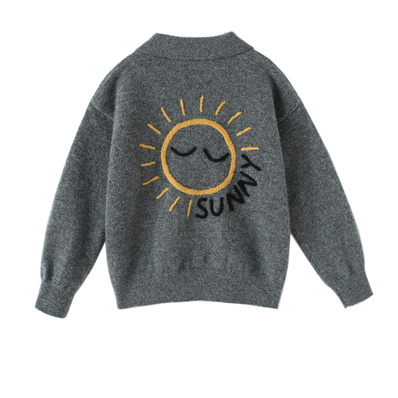 太帅气了!纯手工绣花儿童纯羊绒衫POLO领男童装羊绒毛衣宽松秋冬