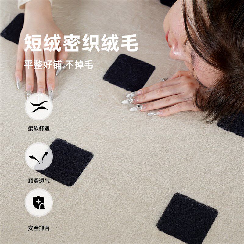 AOVOC 卧室床边毯长条黑石公寓法式奶油风客厅地毯沙发茶几床前垫