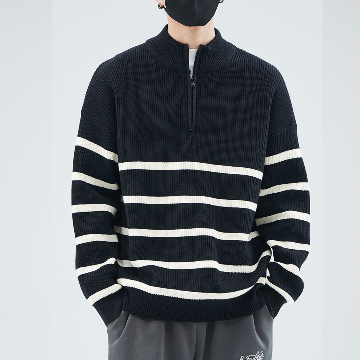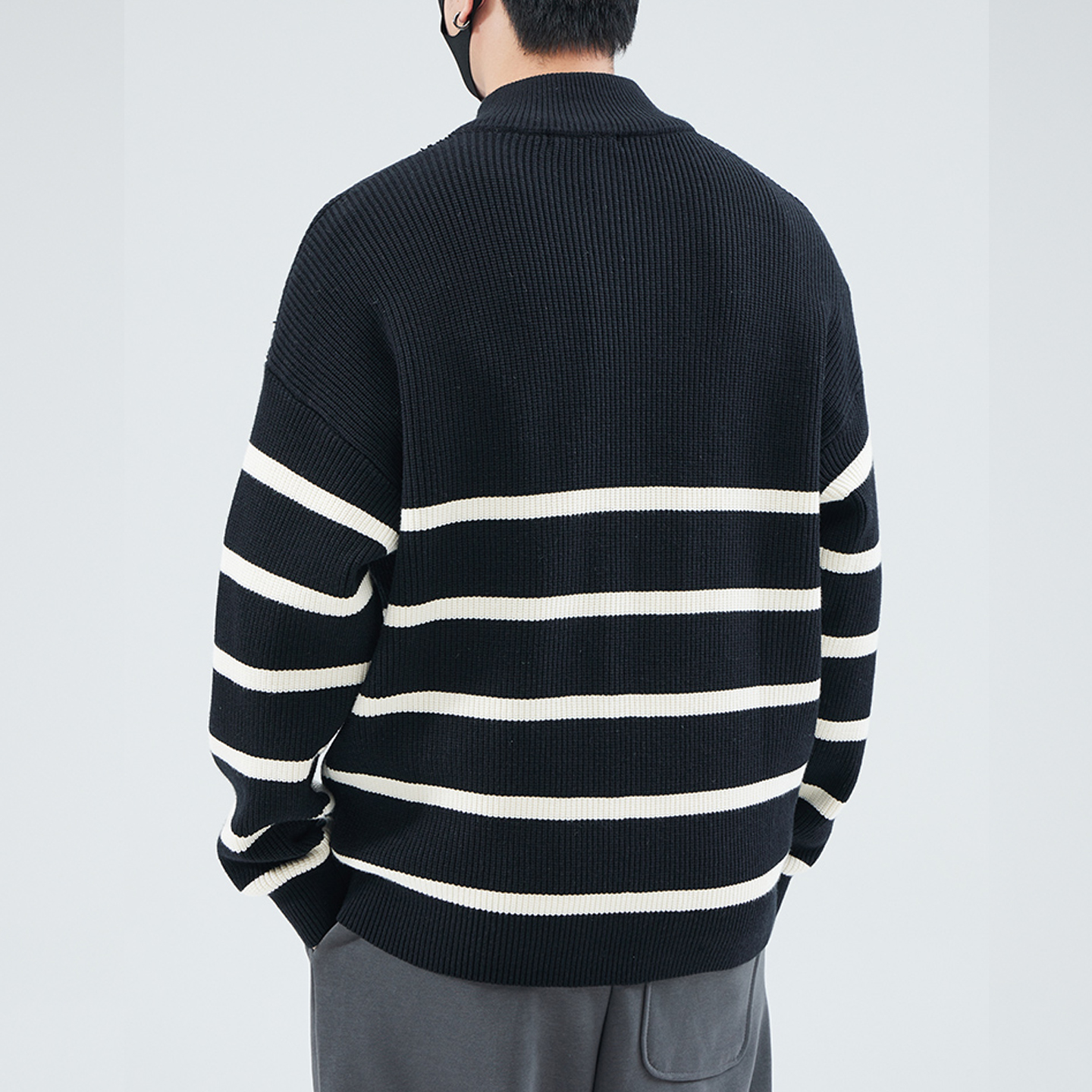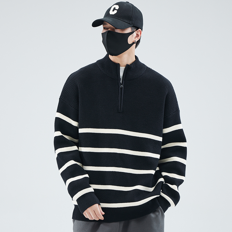 半高拉链领毛衣男秋冬季条纹针织打底衫港风潮牌休闲针织线衣上衣