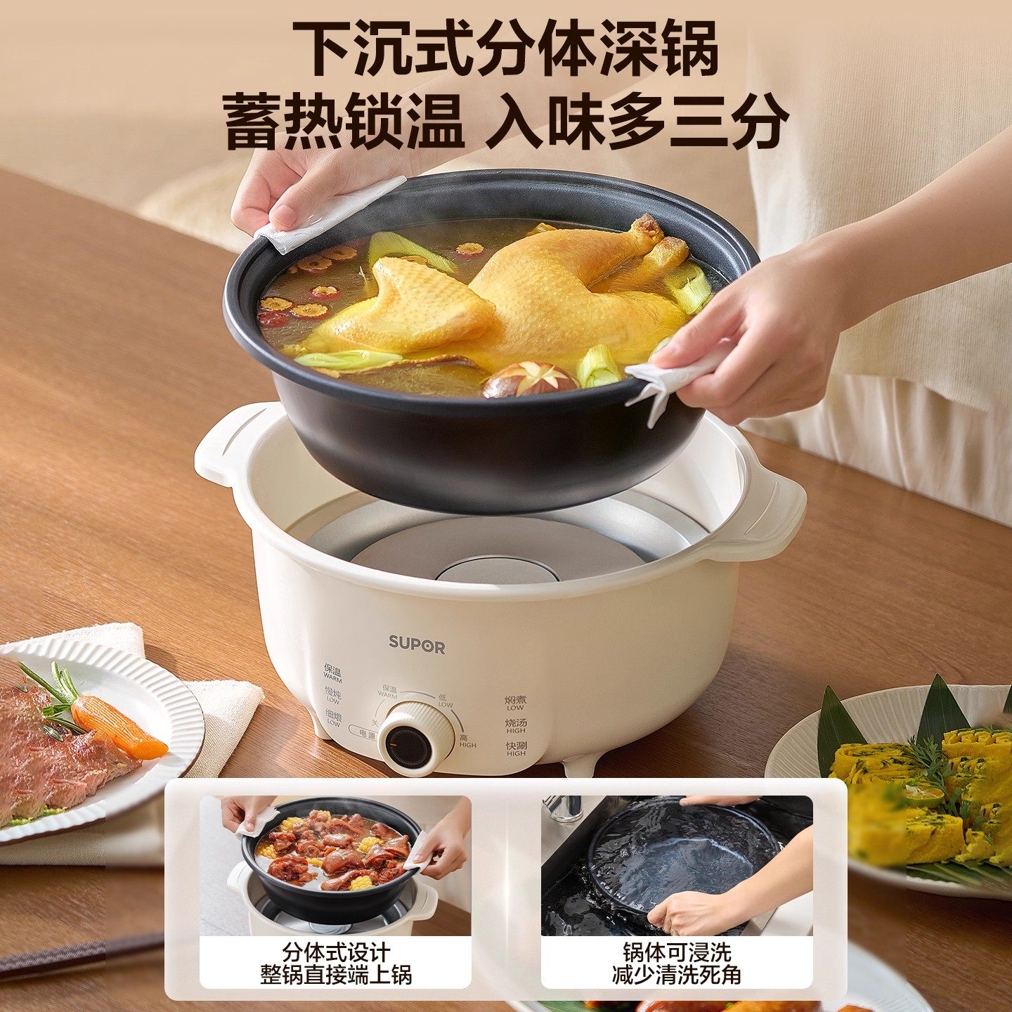 苏泊尔电火锅家用分体式多功能可拆洗大容量电热锅电煮锅电炒锅