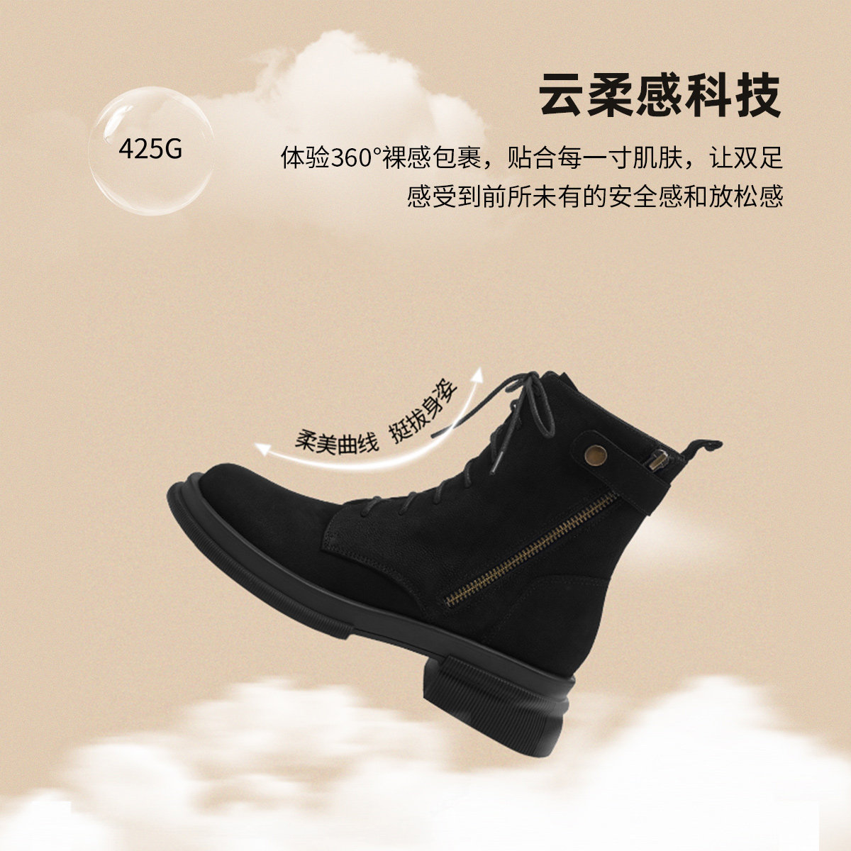 星期六2025新款系带短靴马丁靴