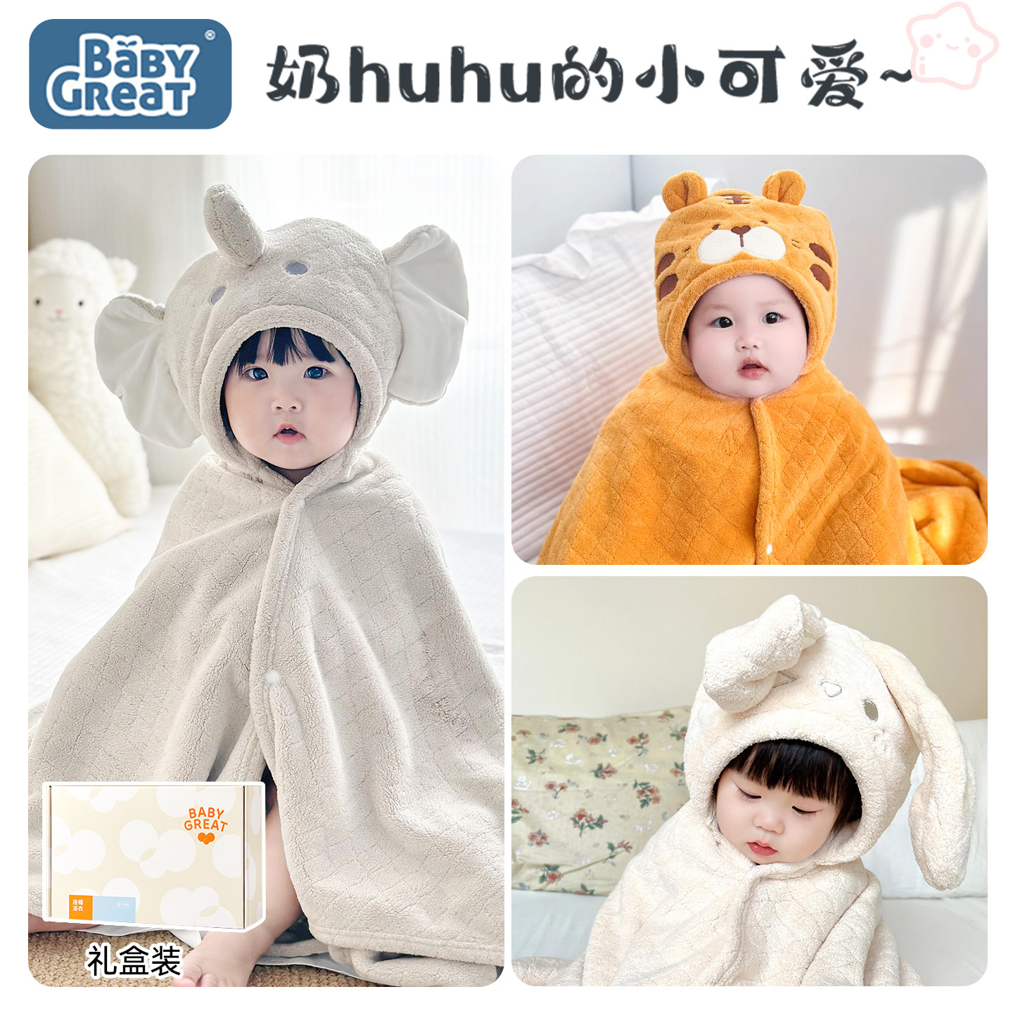babygreat婴儿浴巾宝宝斗篷儿童大象浴袍小象洗澡新生礼物婴幼儿