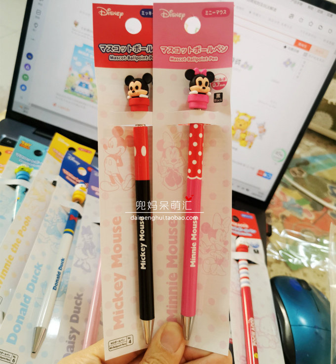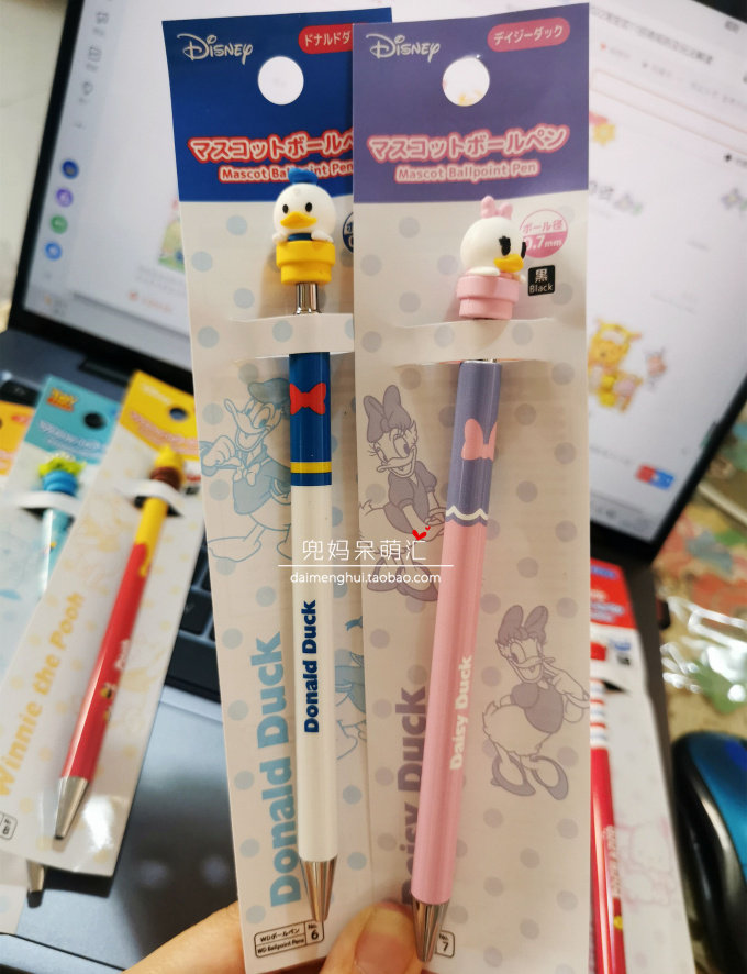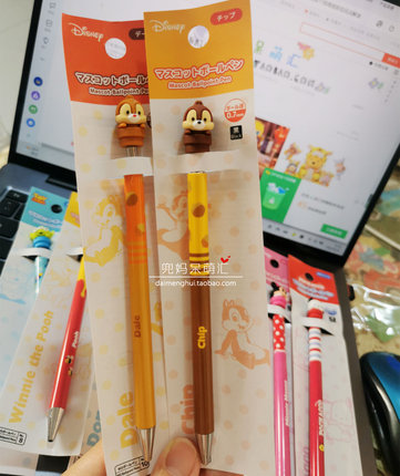 现货日本大创迪士尼新款可爱立体公仔圆珠笔小熊维尼奇奇蒂蒂三眼