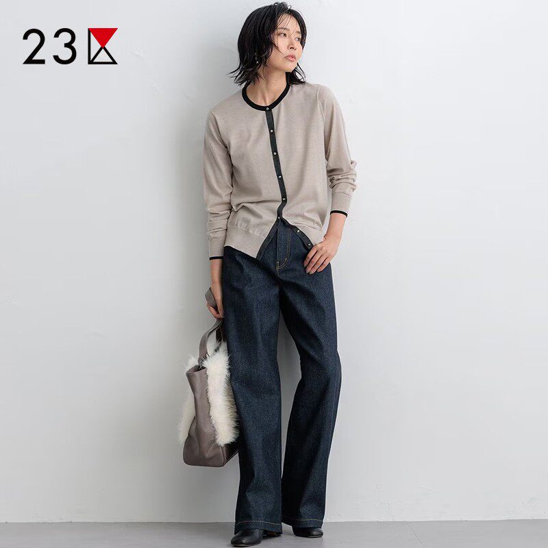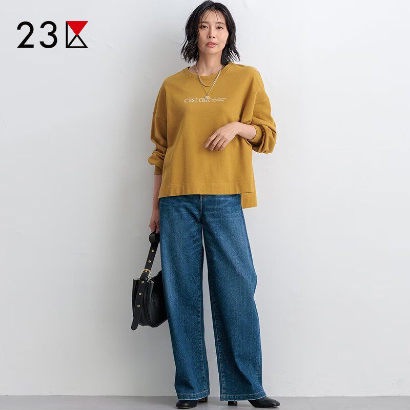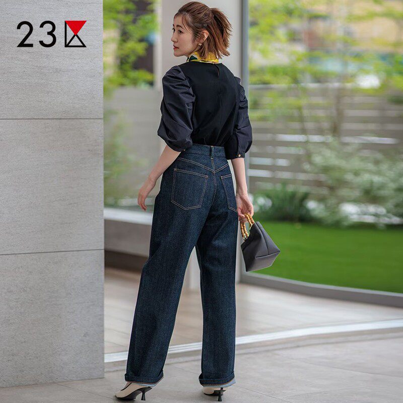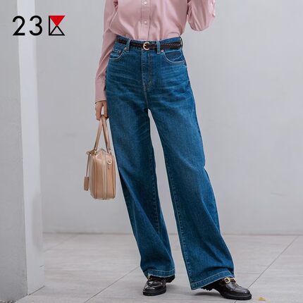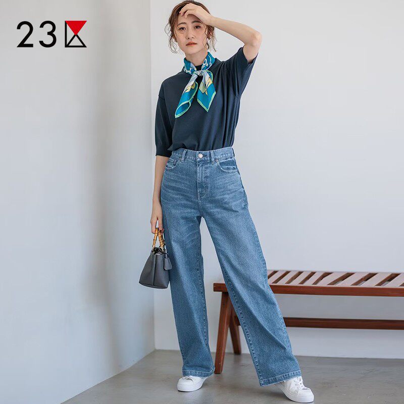 23区日系春季通勤宽松棉混纺水洗做旧牛仔直筒裤阔腿长裤商场同款