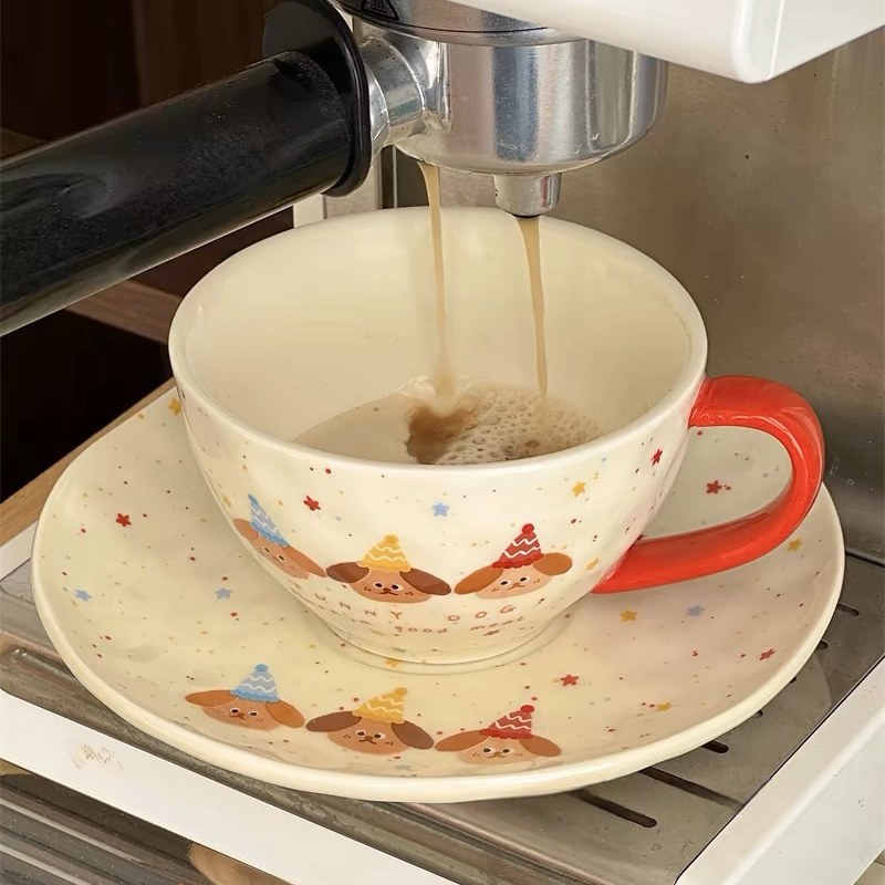 创意波点小狗陶瓷盘子家用高级感餐具可爱儿童专用分格餐盘早餐盘