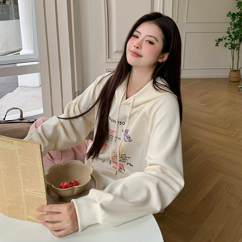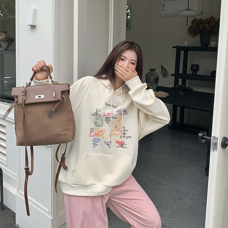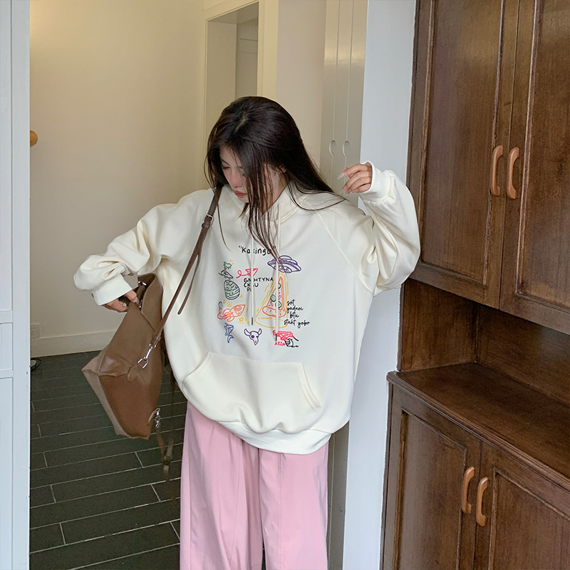 小吉家大码女装减龄学生长袖上衣秋冬可爱印花宽松型百搭连帽卫衣