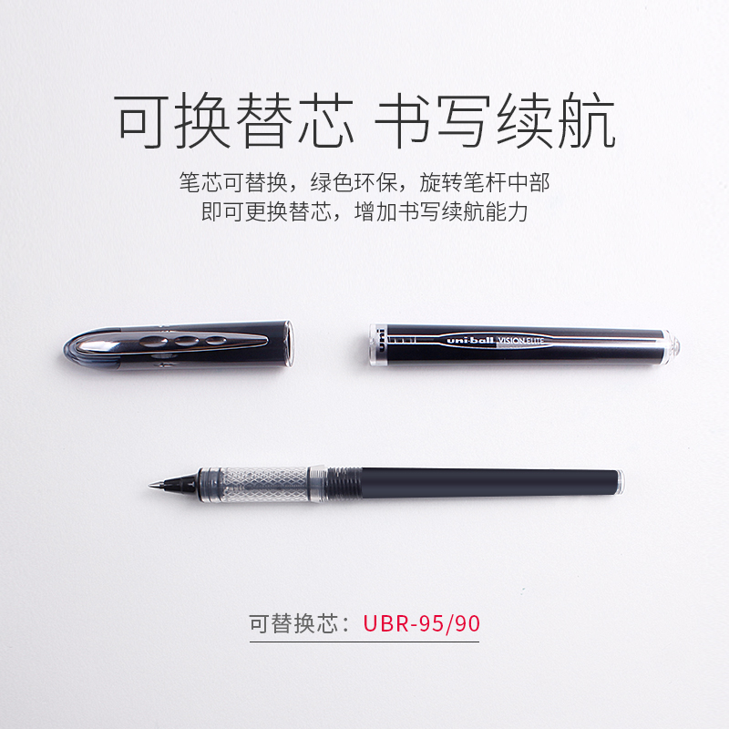 日本UNI三菱笔UB-200/205直液式中性笔学生用考试水笔大容量办公文具用品商务走珠笔签字笔黑色水性笔0.5/0.8