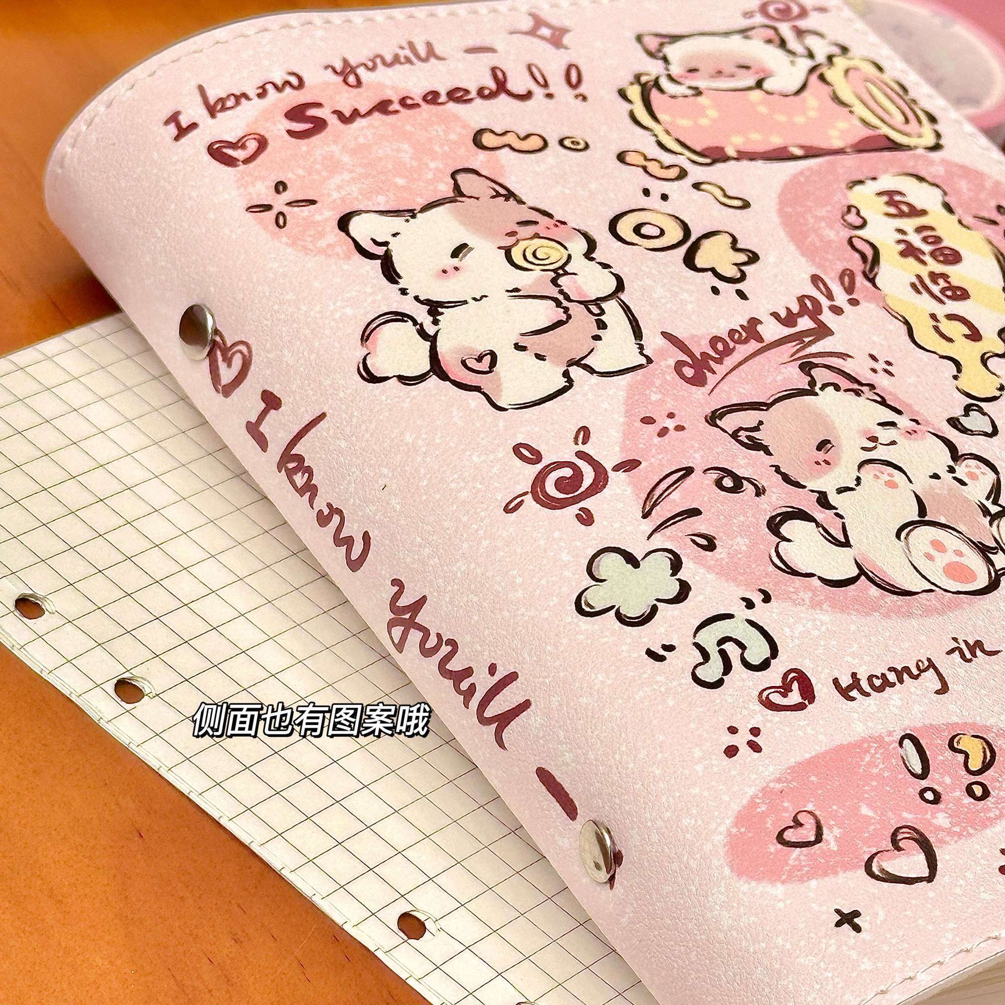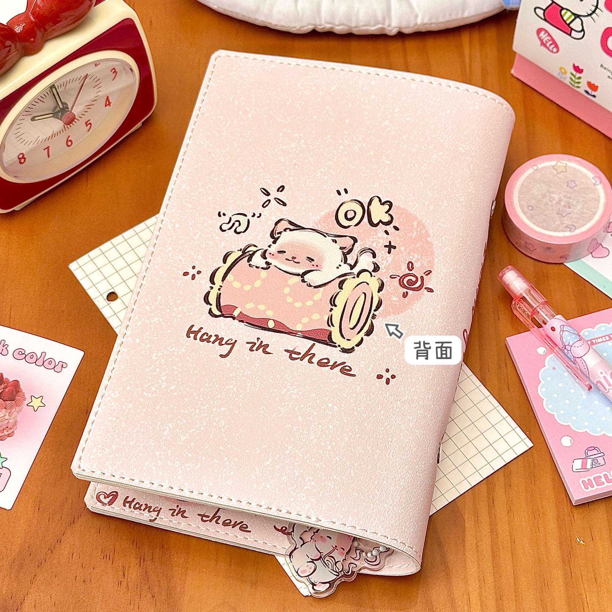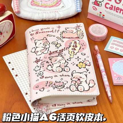 小红书同款可爱粉色小猫A6软皮本学生高颜值便捷活页本笔记本记事