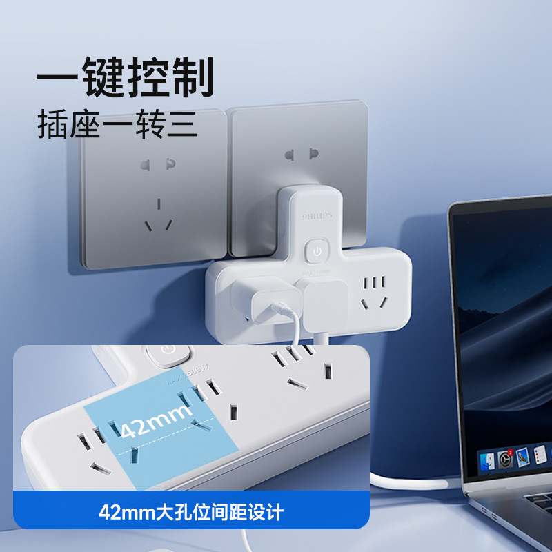 飞利浦插座转换器一转多多功能排插面板多孔位插座线板扩展插头