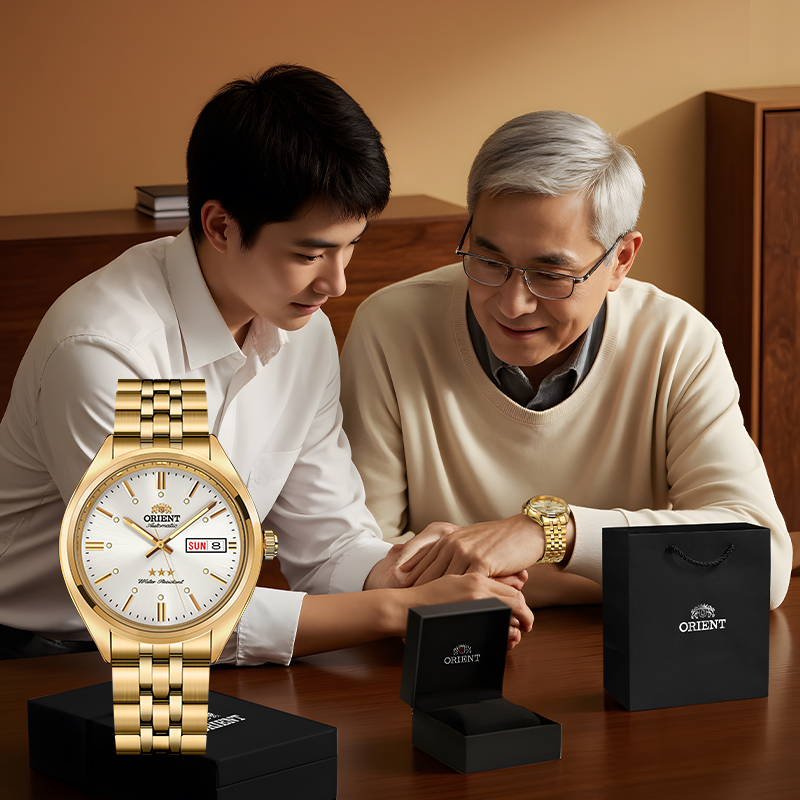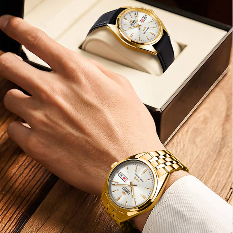 Orient东方双狮手表男商务金表日本官方正品男士机械表父亲节礼物