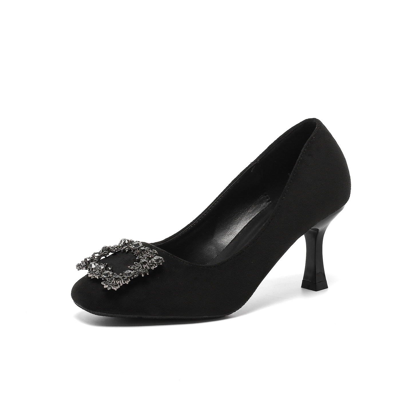 大码高跟水钻方扣通勤不累脚单鞋