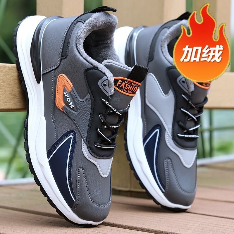 加绒棉鞋男鞋冬季2025新款软底鞋子防滑男士休闲鞋网面学生运动鞋