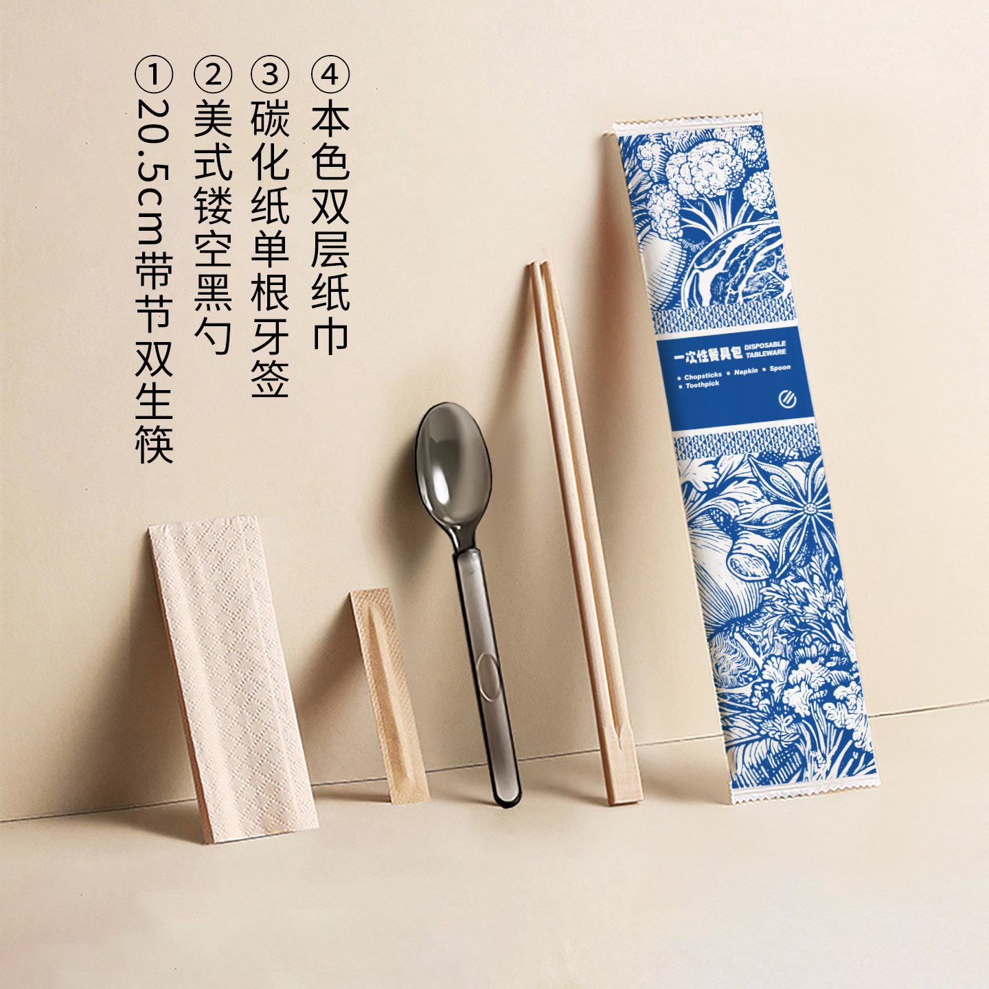 一次性筷子四件套餐具包四合一套装高档外卖商用打包牛皮餐包定制