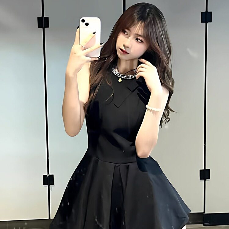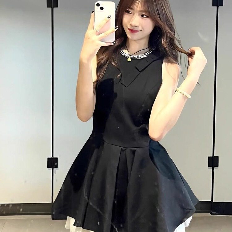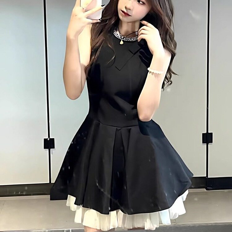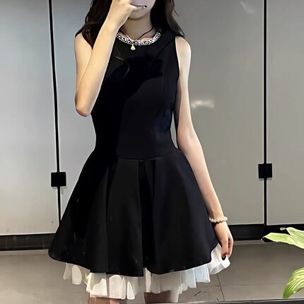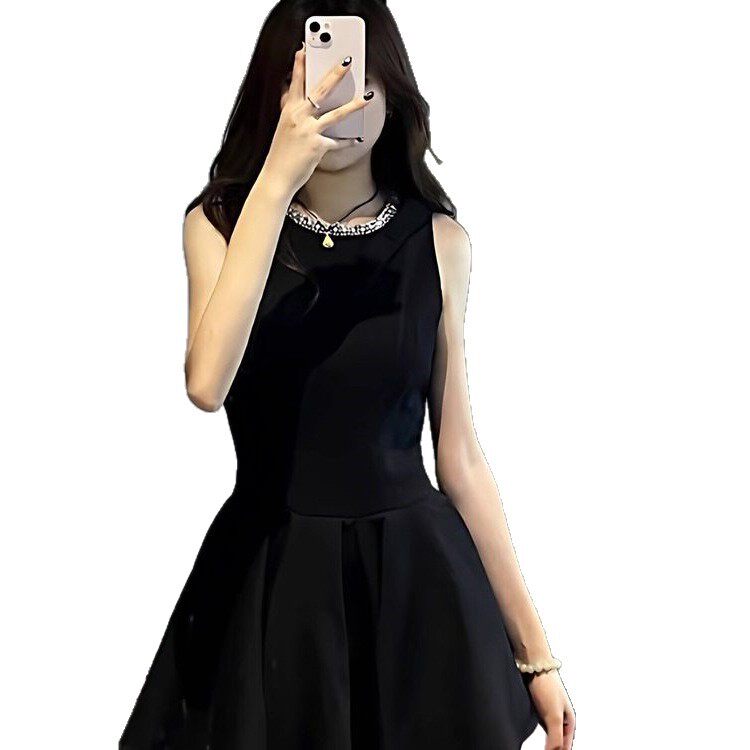 千金风小黑裙连衣裙女夏季感生日party小礼裙显瘦无袖背心裙