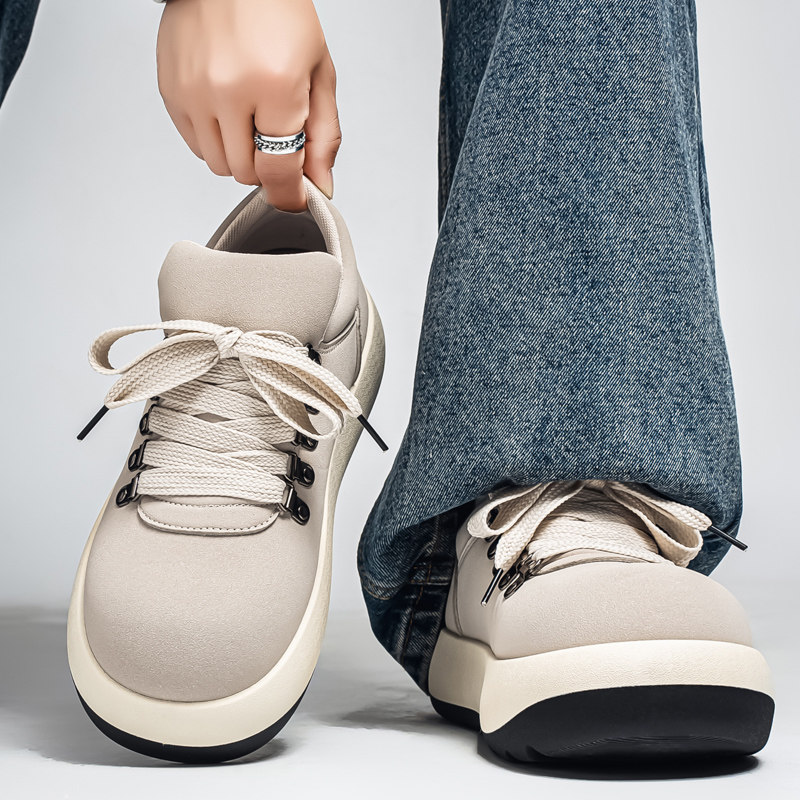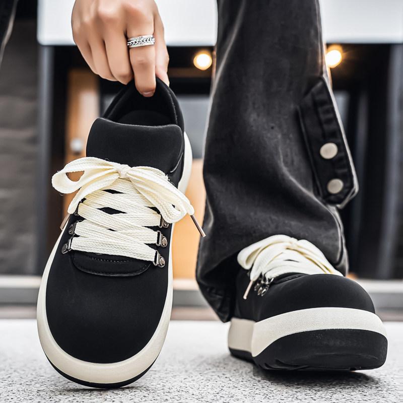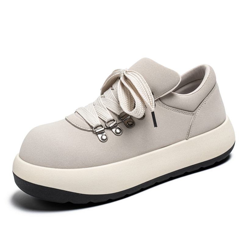 日系面包鞋男2026新款春季小众低帮大头鞋厚底内增高7CM休闲板鞋