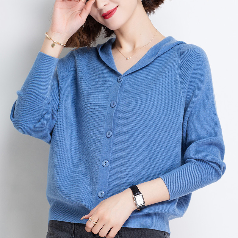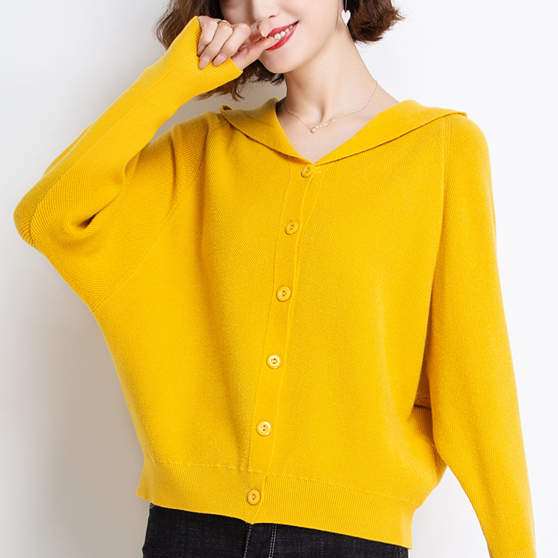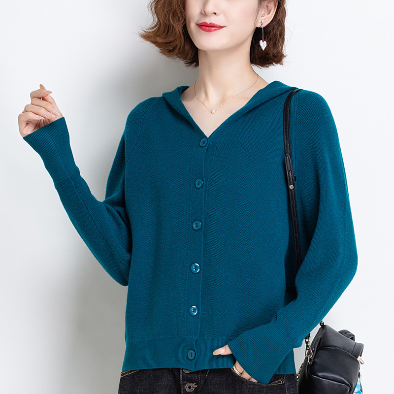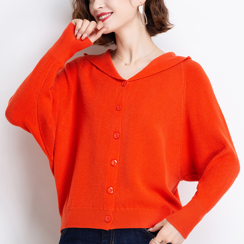 妈妈春秋装羊毛衫连帽针织衫女开衫中年大码短款外搭蝙蝠毛衣外套