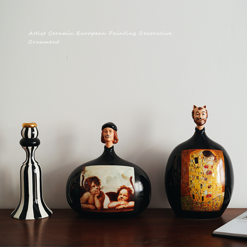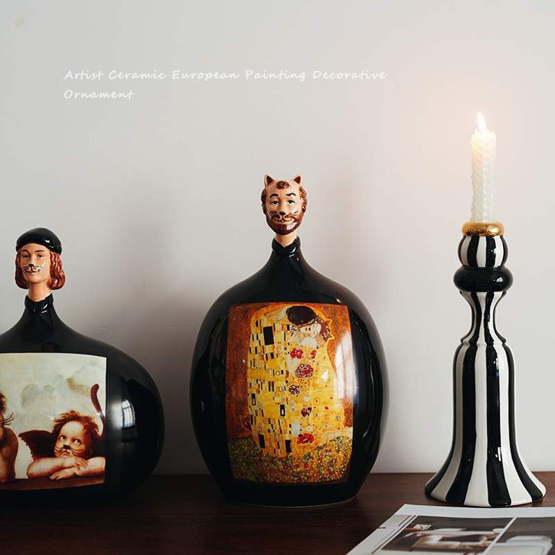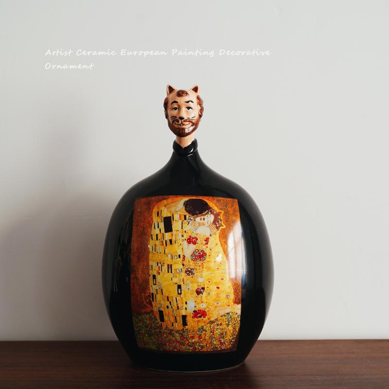 艺术设计款 出口欧式名画创意陶瓷猫叔摆件 文艺复兴复古装饰摆设