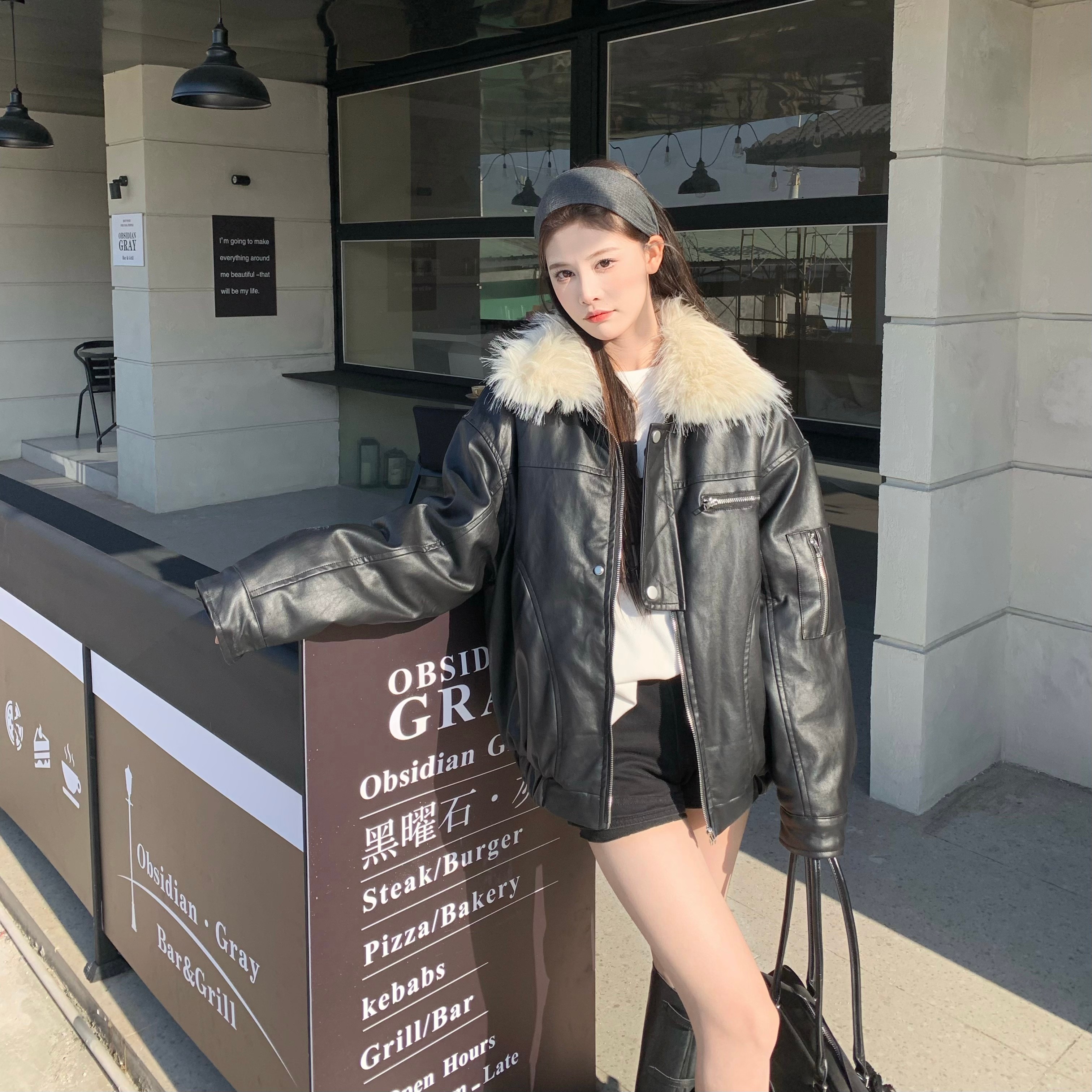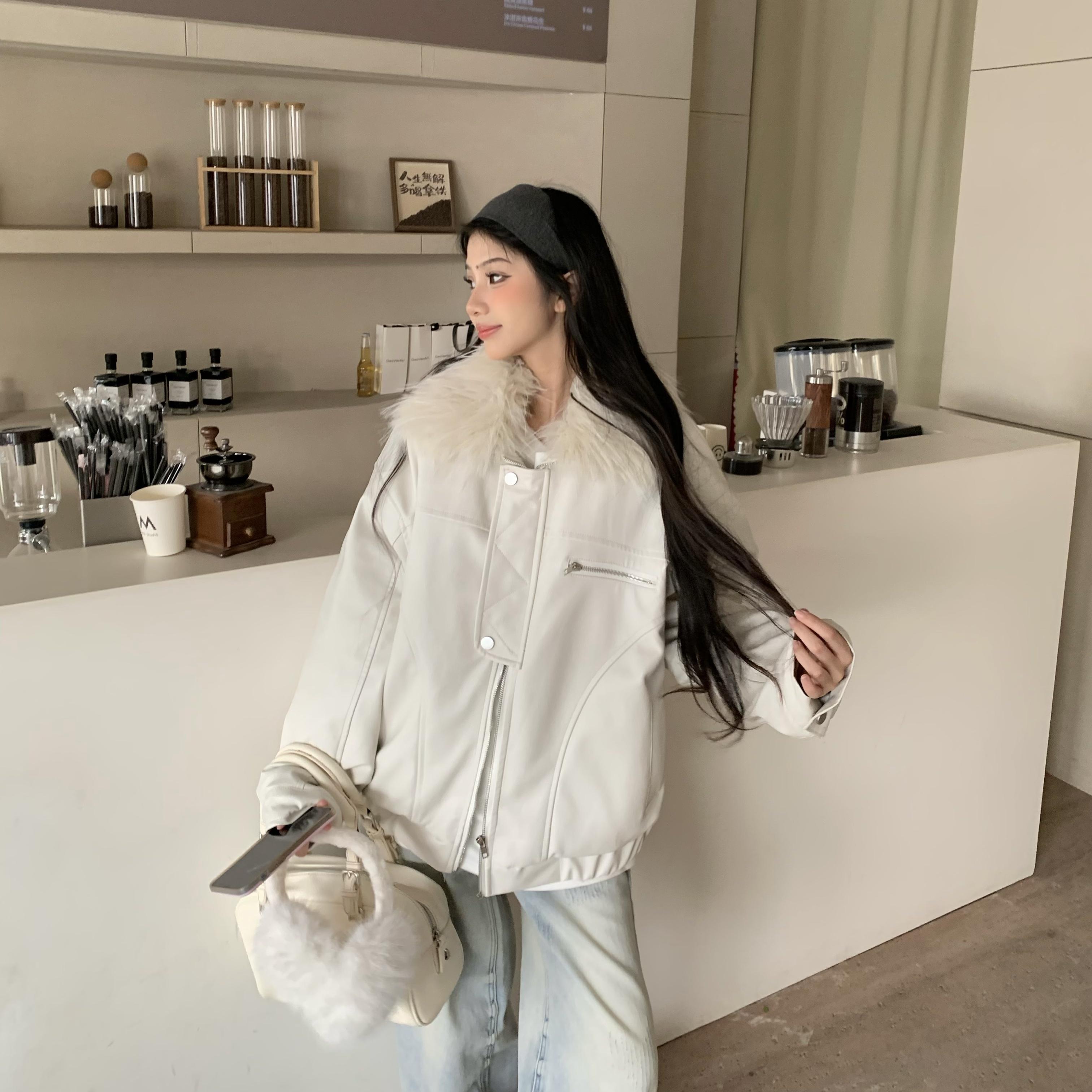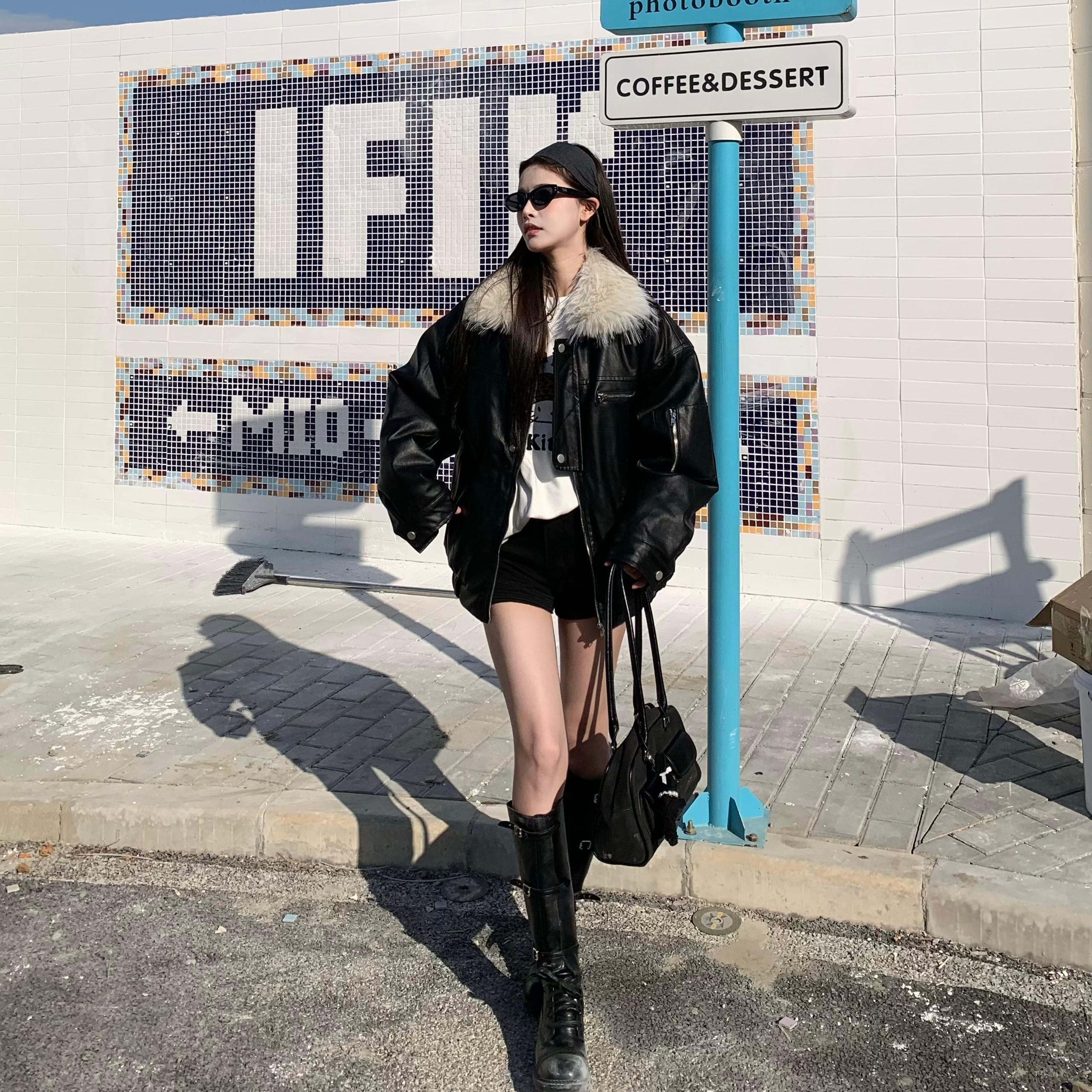 3MER哦哦三妹设计感毛领帅气皮衣外套女2025秋冬新款高级感袄子