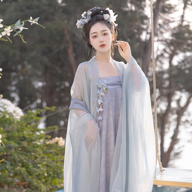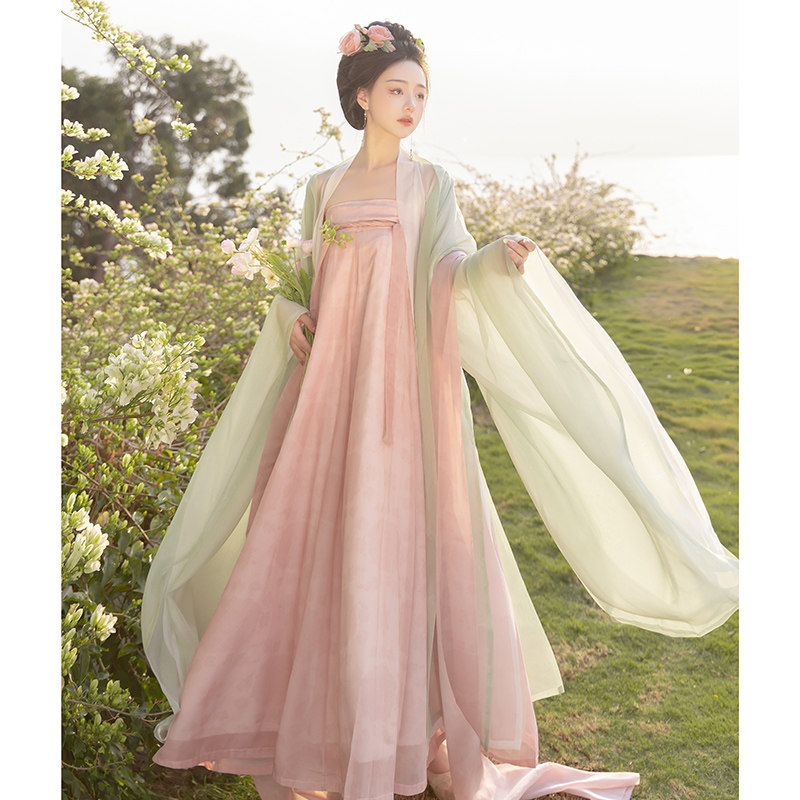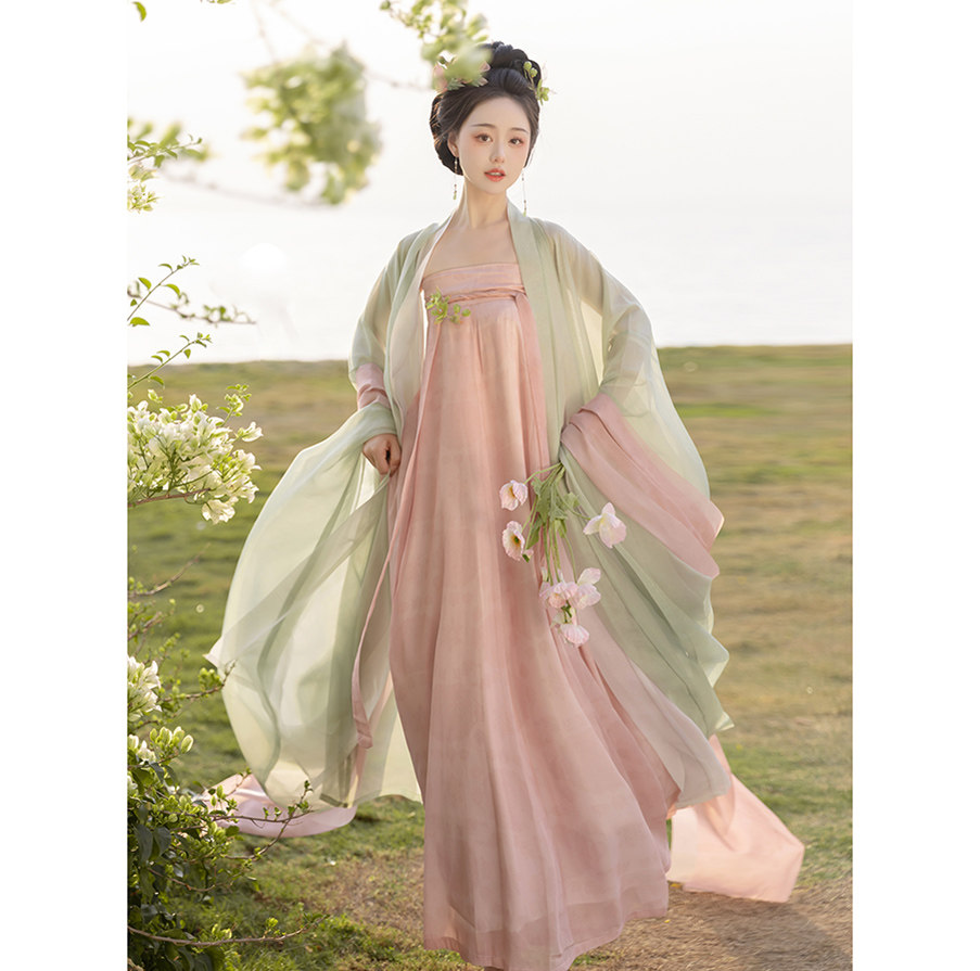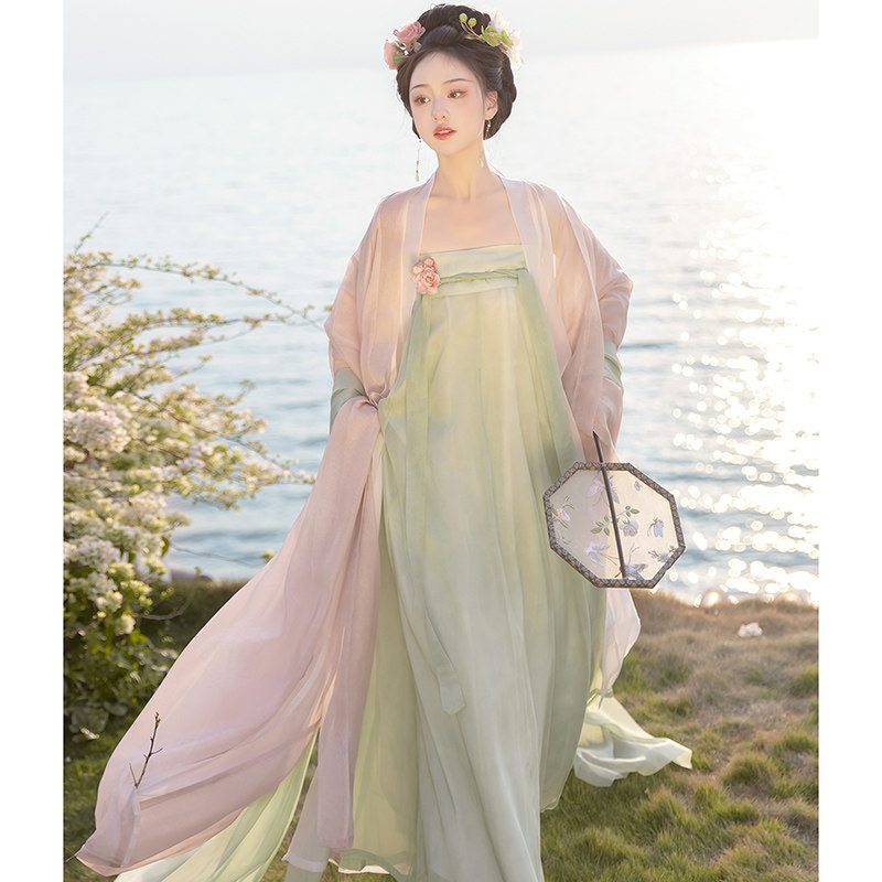 藏仙居原创汉服女桃花溪唐制齐胸双层大袖一片式破群全套日常春夏