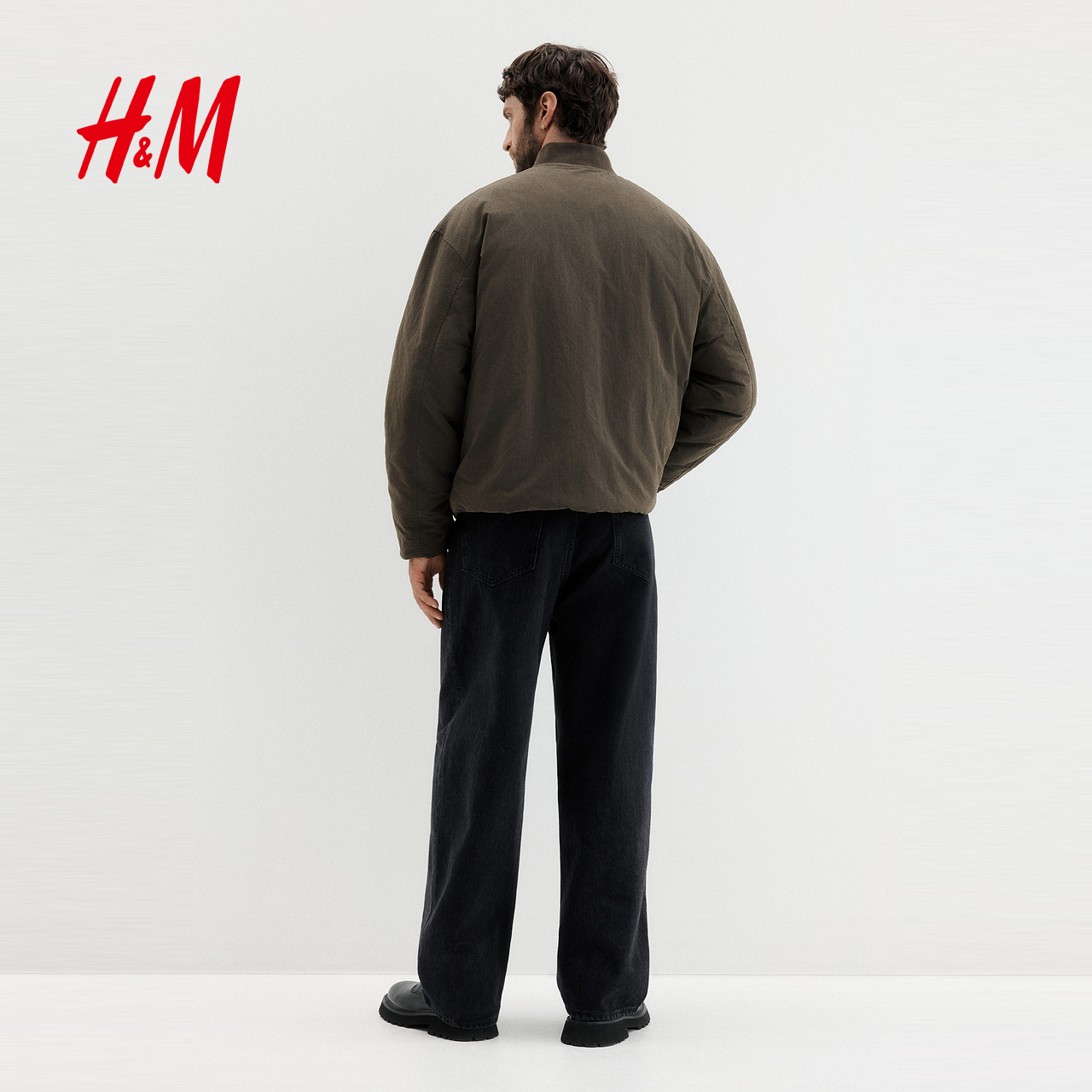 HM男装夹克2025年秋季新款立领宽松版型尼龙飞行员夹克1295811