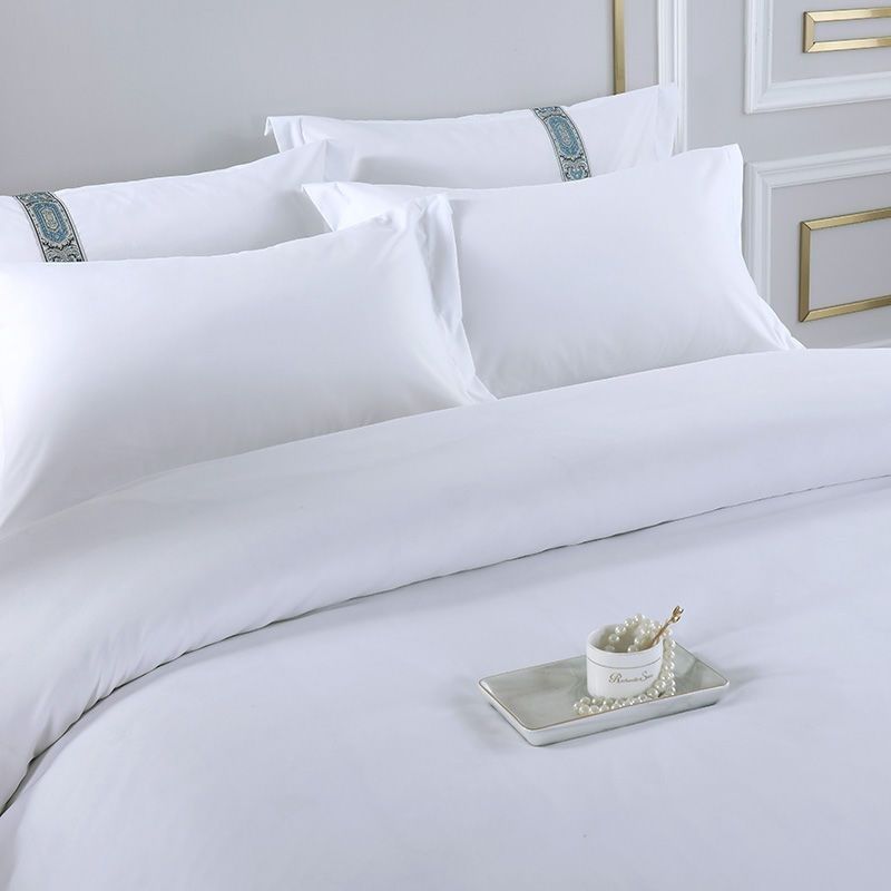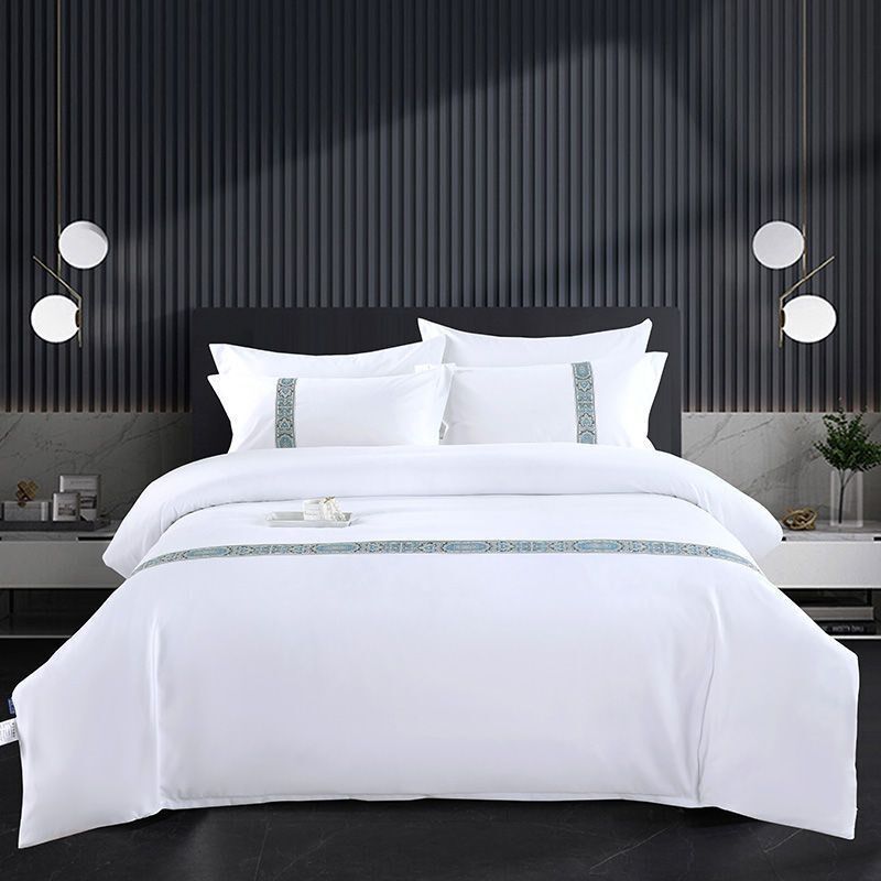 宾馆酒店床上用品布草纯白色床单被套四件套织带旅馆民宿风三罗加