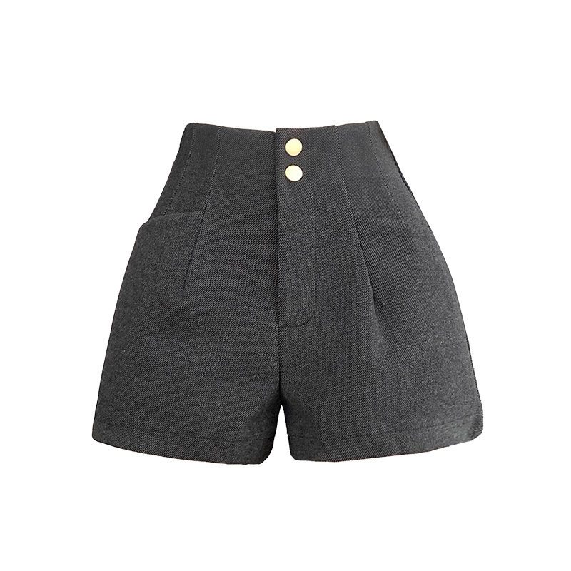 毛呢短裤女2025秋冬季新款外穿黑色高腰阔腿A字灰色显瘦靴裤