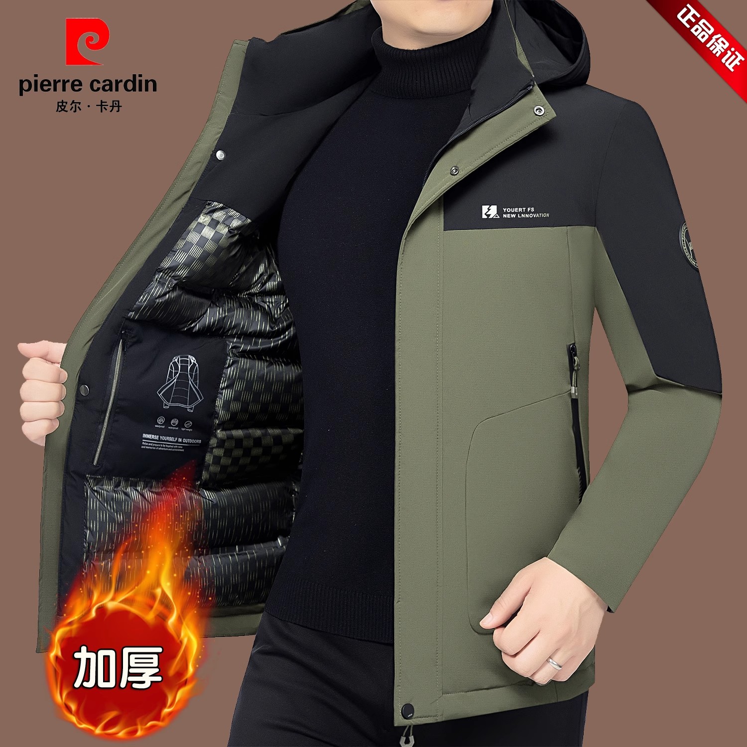 皮尔卡丹正品加厚派克服棉衣外套男士中老年冬季棉袄父亲羽绒棉服