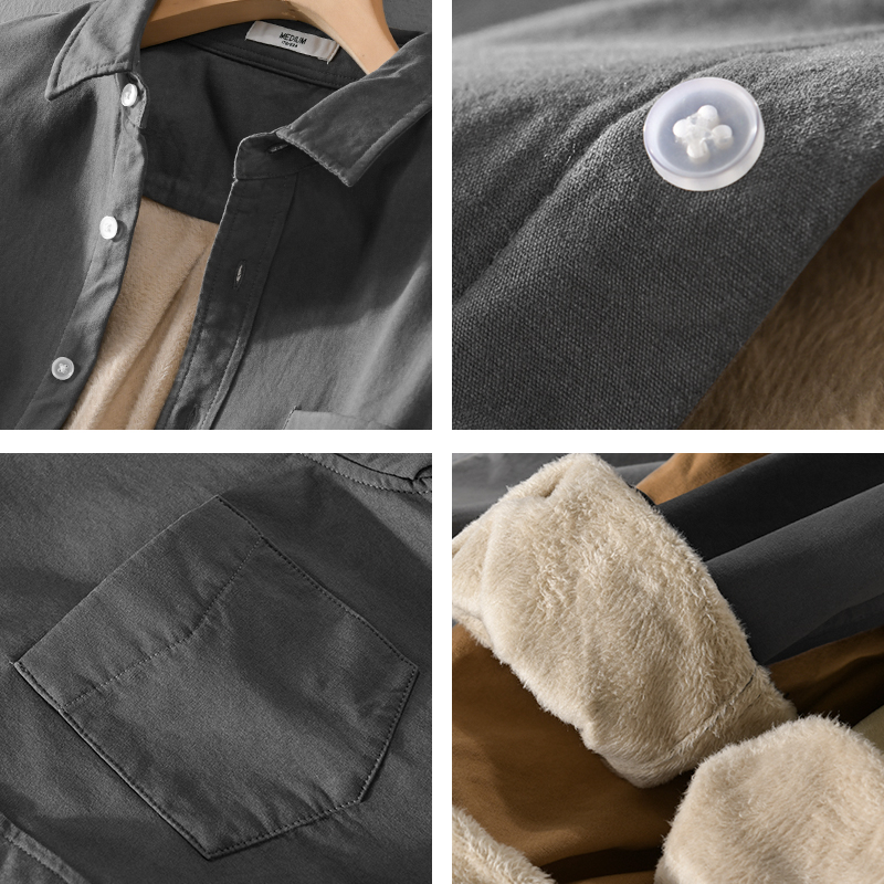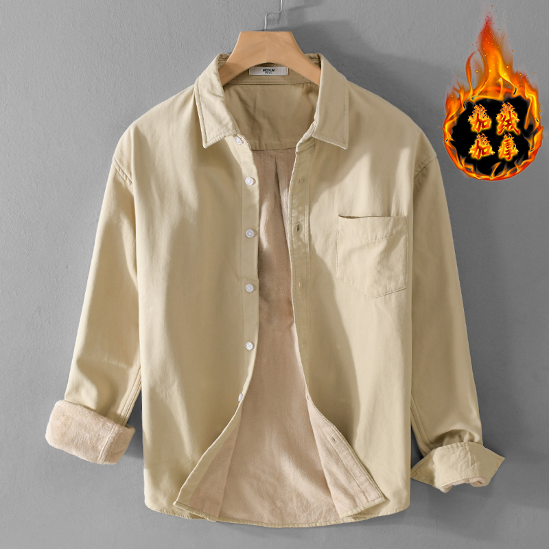 汉序秋冬季日系复古翻领加绒保暖纯色长袖衬衫男士宽松休闲衬衣服