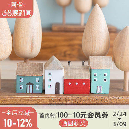 可爱治愈木质小房子微缩景观摆件