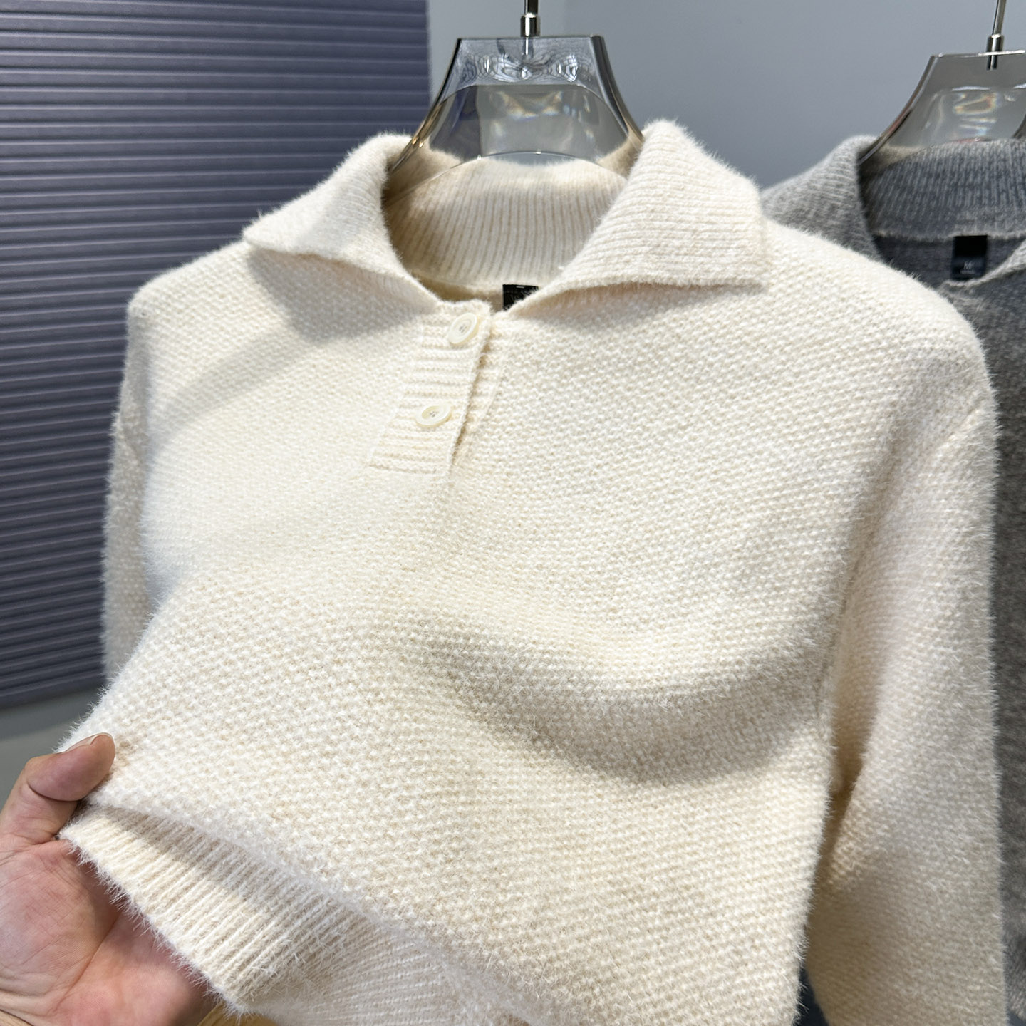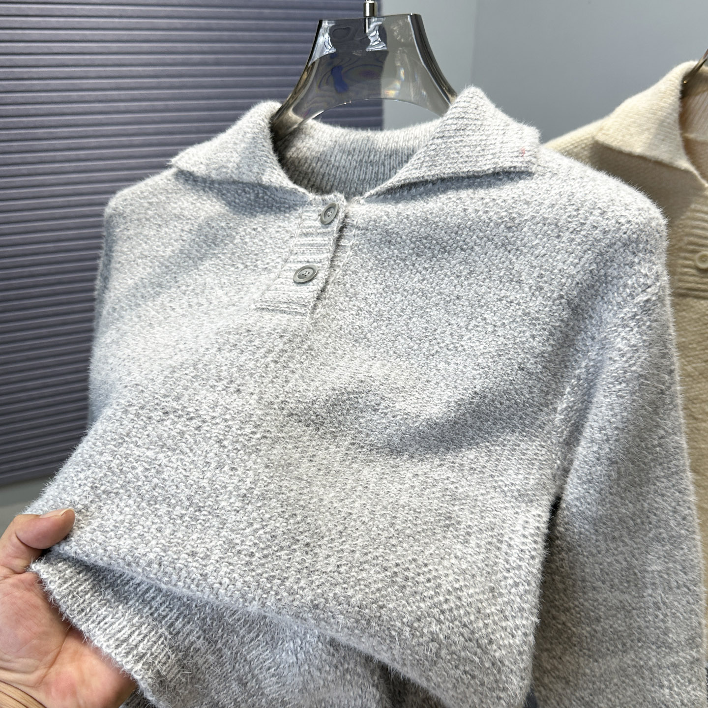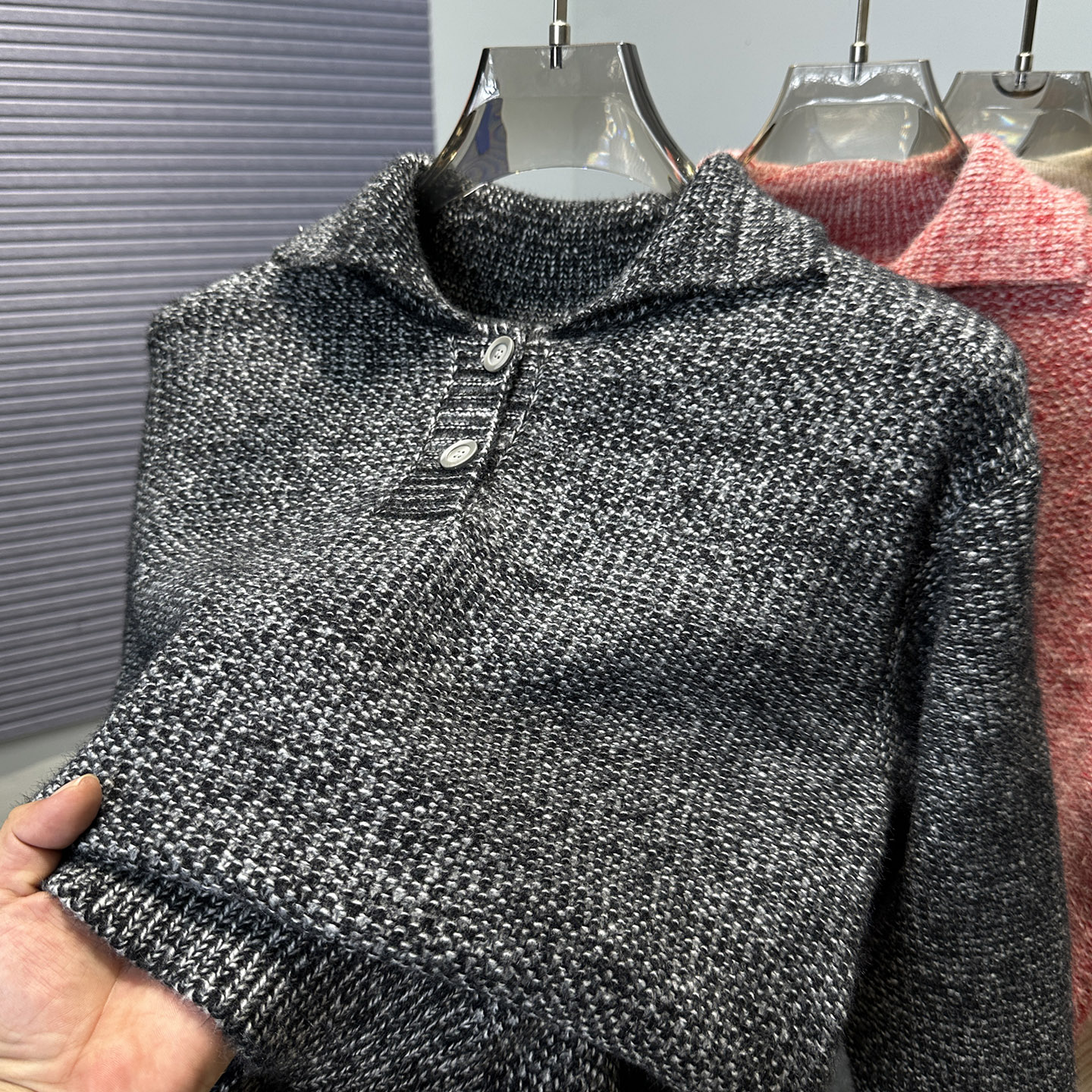 翻领花毛线毛衣男秋冬韩版宽松潮流青年男装休闲polo领针织衫长袖