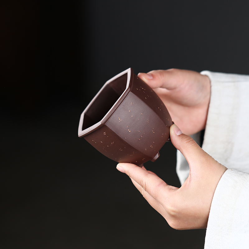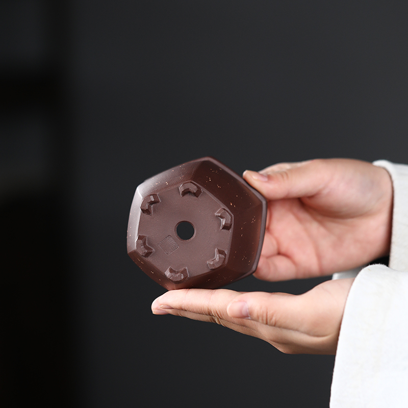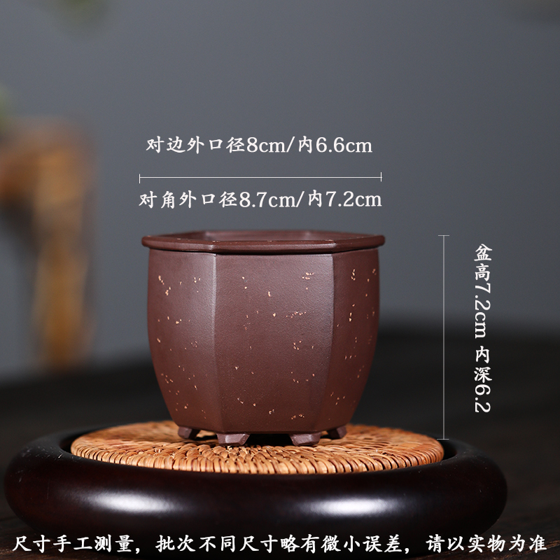 尚扣紫砂 桌面古典微型花盆 名家手工铺砂六方菖蒲 多肉绿植花器