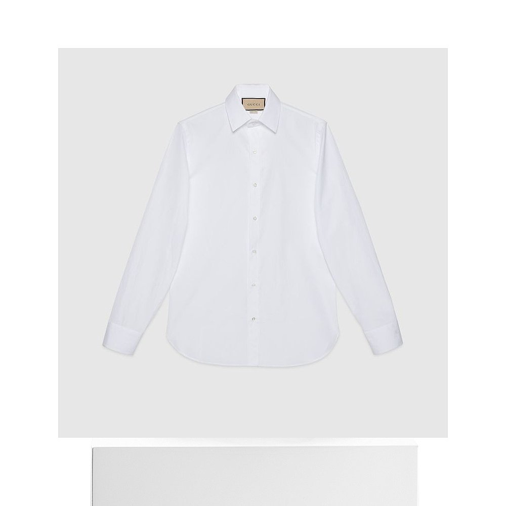 自营欧洲直邮Gucci古驰男士白色的双G棉质府绸衬衫