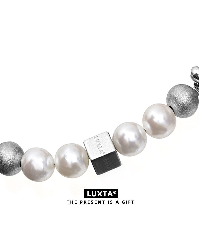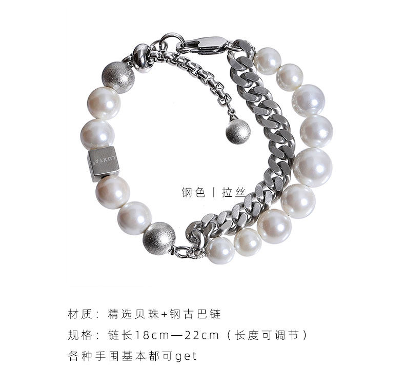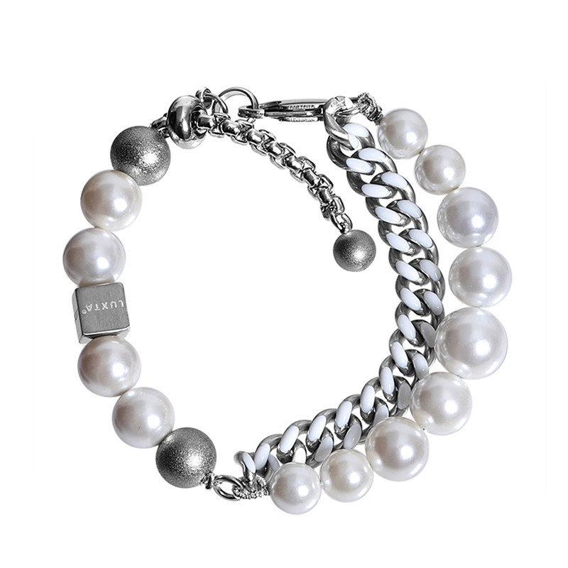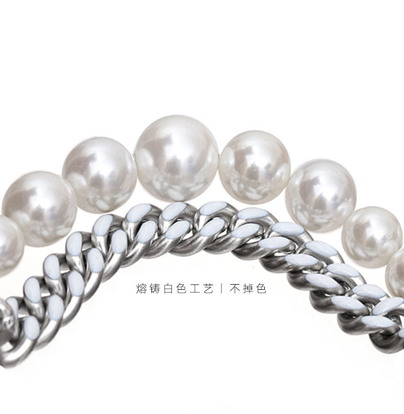 LUXTA原创 珍珠古巴双层手链 可调节长度白色钛钢古巴链男女嘻哈